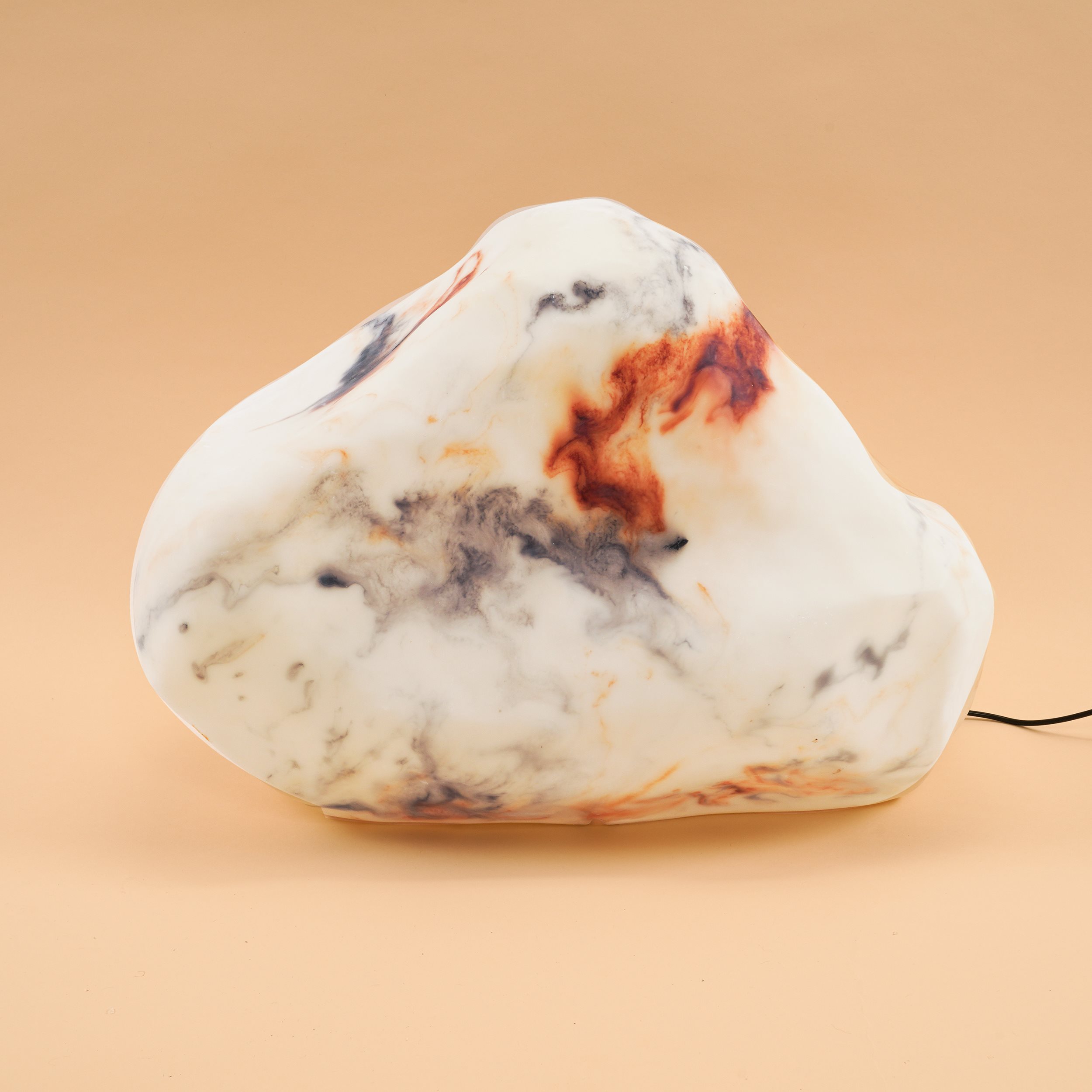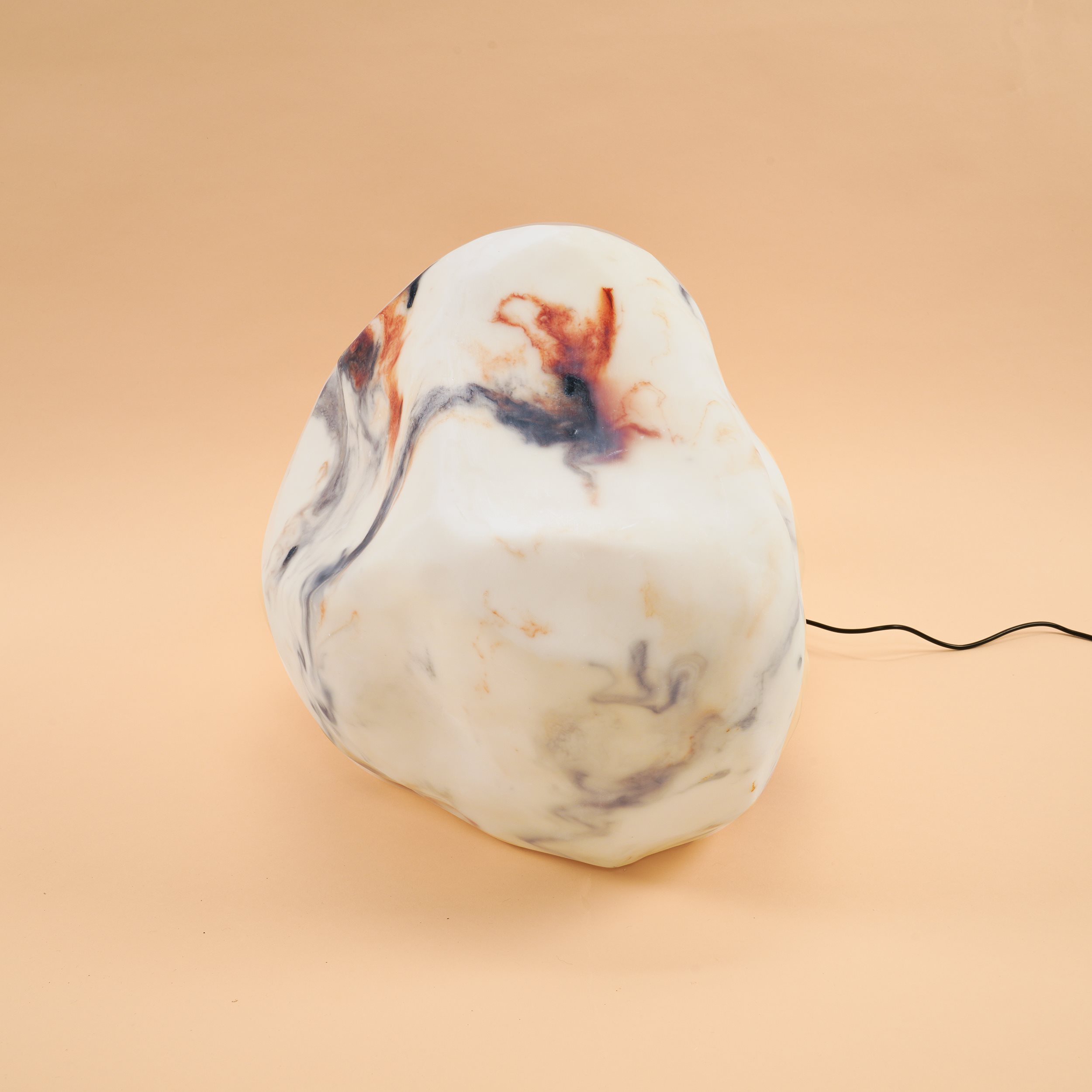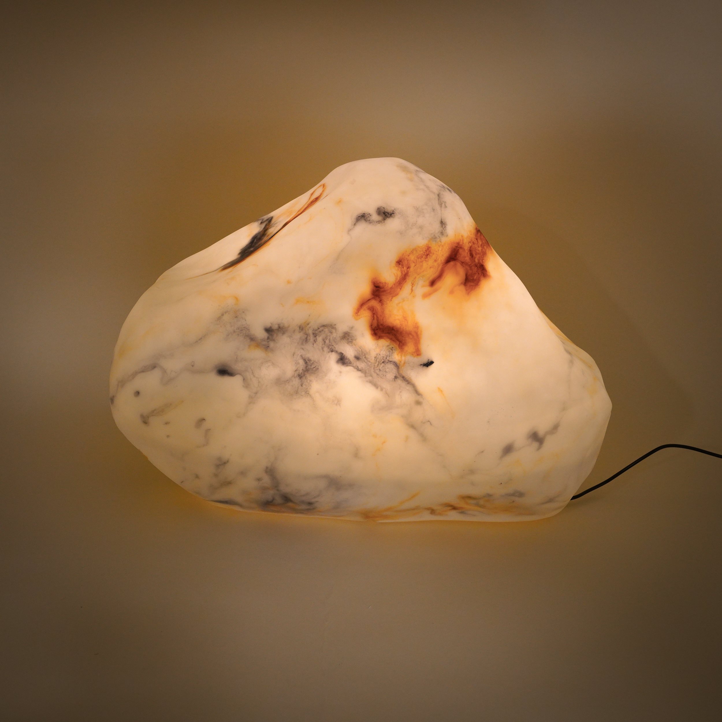 | Produkt besteht aus: | Leuchtstein aus Kunstharz mit eingearbeiteten Farbverläufen (handgearbeitet) |