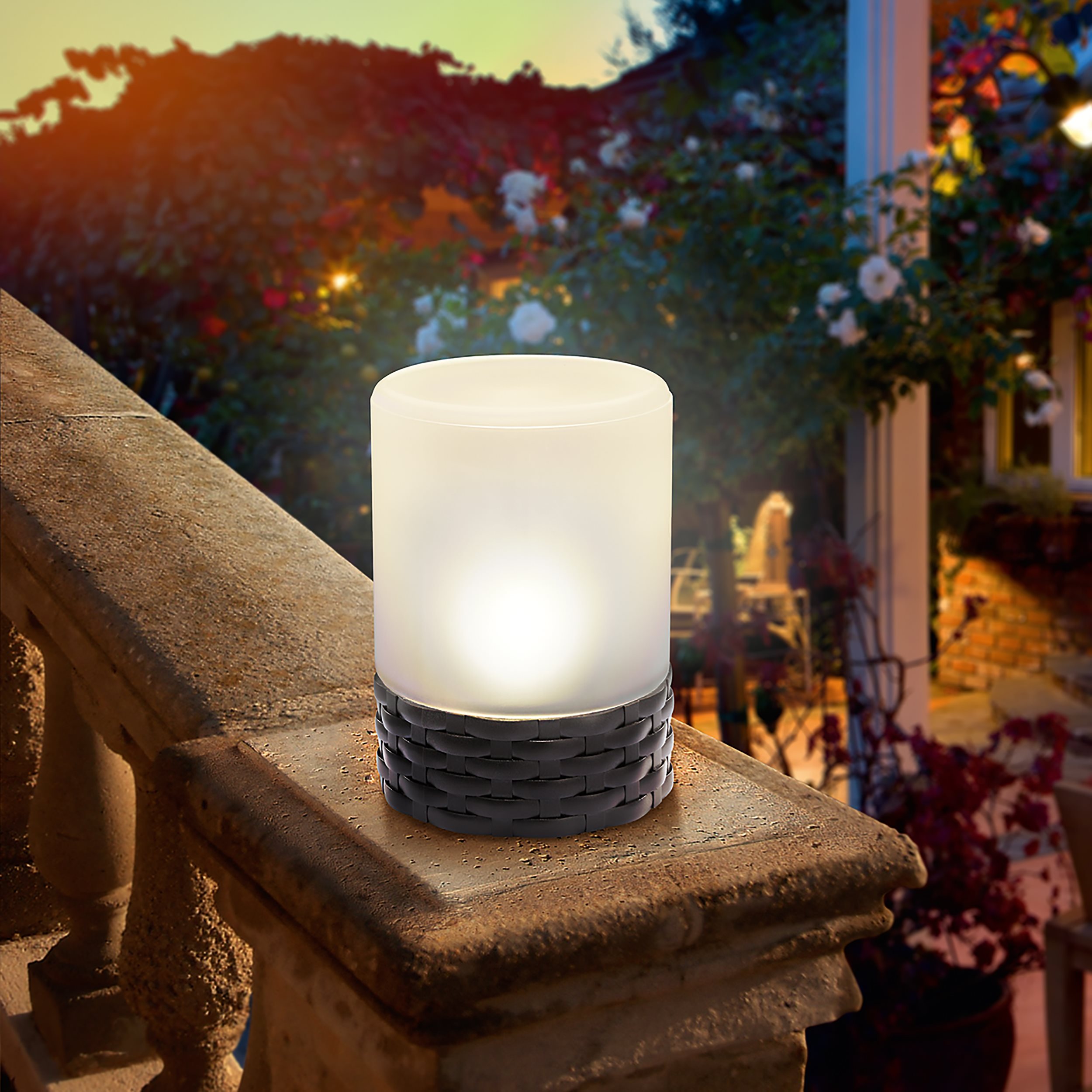 Dekorative Solar Tischleuchte Rattan Style aus Glas