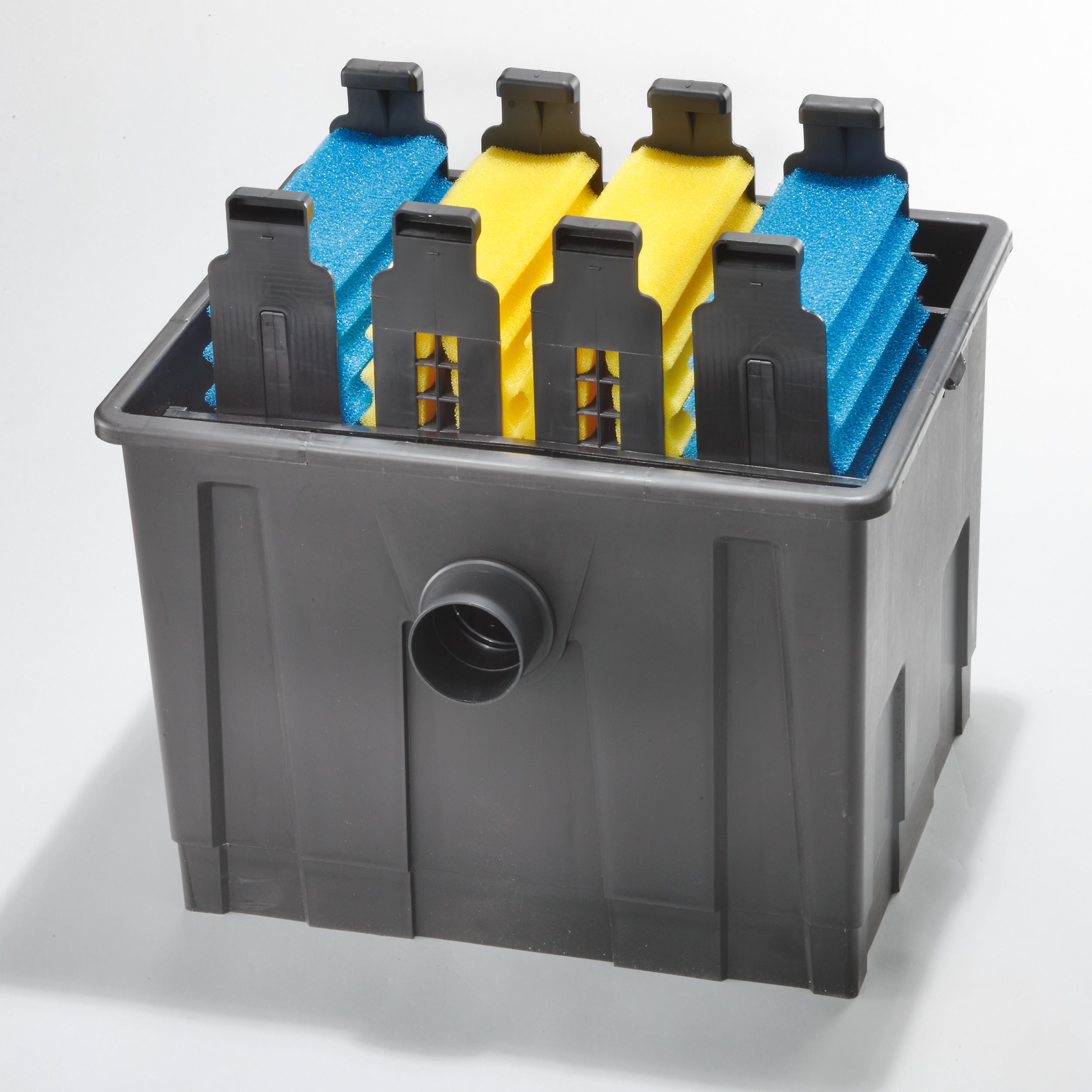 Enthaltene Filtermedien: 1 Japanmatte, 2 gelbe und 2 blaue Filterschwämme, Bio-Filterkugeln