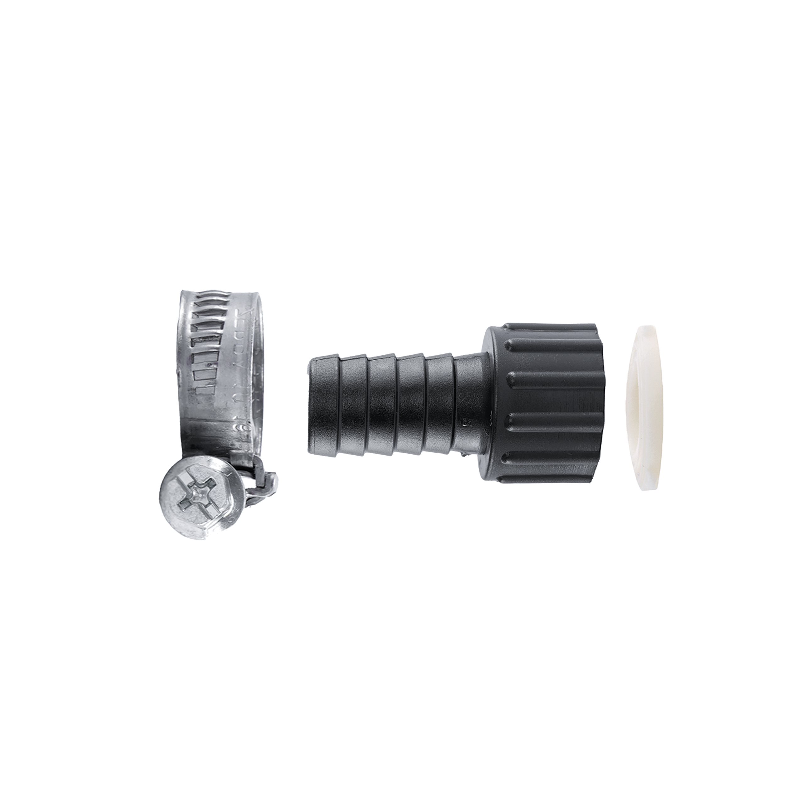 PP-Schlauchtülle 3/4" x 19 mm mit Überwurfmutter und Schelle