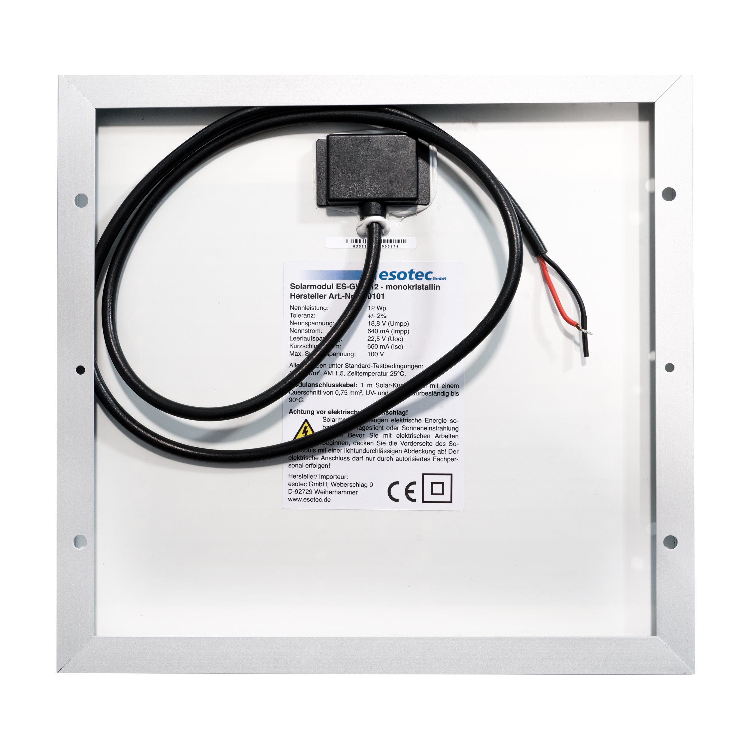 - 1 x Solarmodul (einzeln & sicher verpackt mit umlaufender Kartonage)