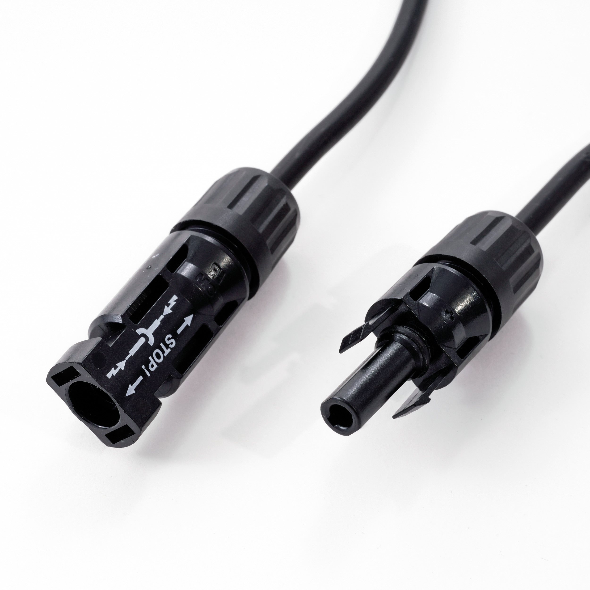 Das Kabel ist aus UV- und witterungsbeständigen Material ausgeführt und an den Enden ist je eine MC4 kompatible Buchse und Stecker vorhanden. Die Leitungen sind immer paarweise verpackt.