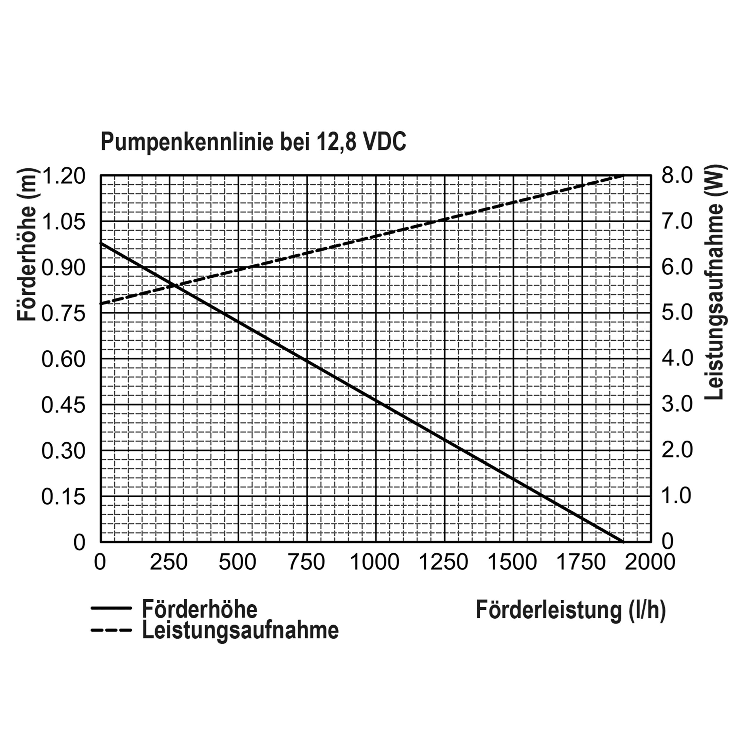 | Förderhöhe: | Max. 1 m (Kennlinie siehe Bilder) |