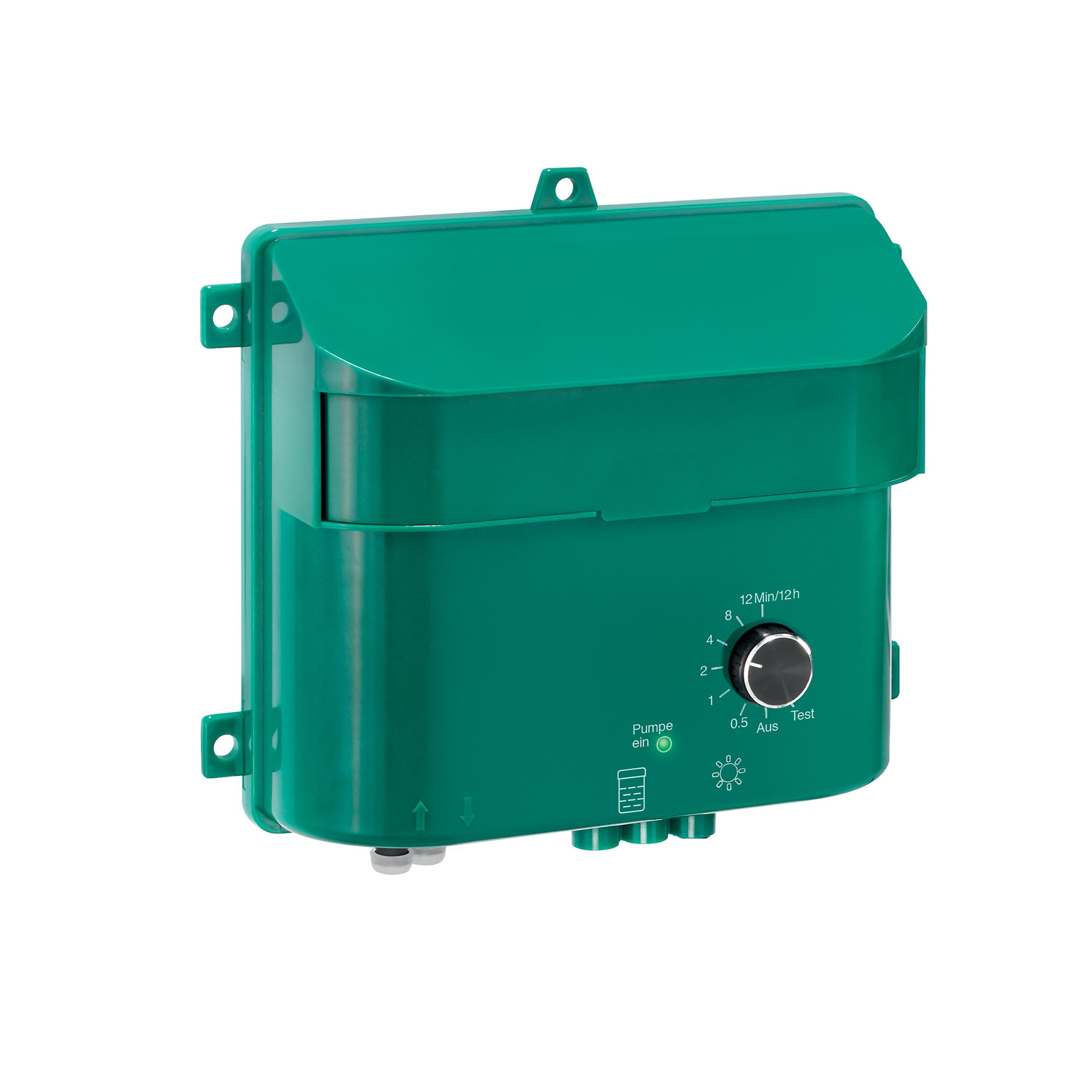 Aus diesem Grund sollte die Steuereinheit immer ca. 20 cm über dem max. Wasserspiegels des Behälters angebracht werden.