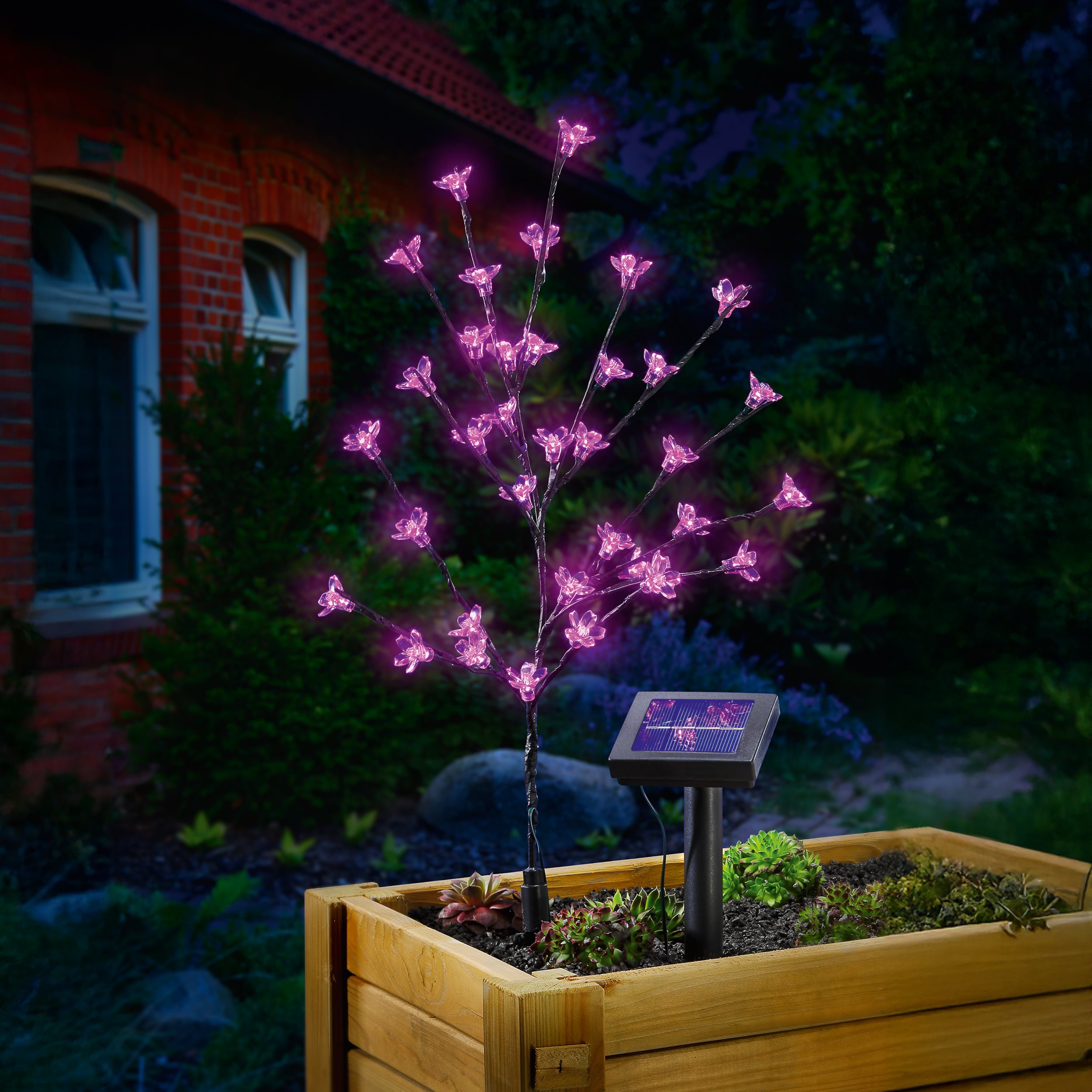 - 1 x Solar Blütenstrauch mit Kabel und Solarmodul (fest verbunden)
