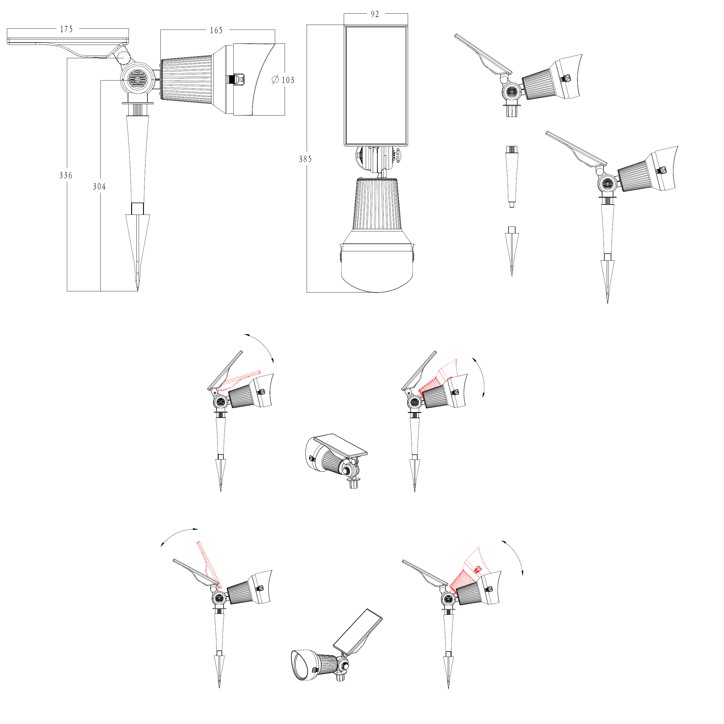 - 1 x Solarstrahler inkl. Solarmodul und Akku