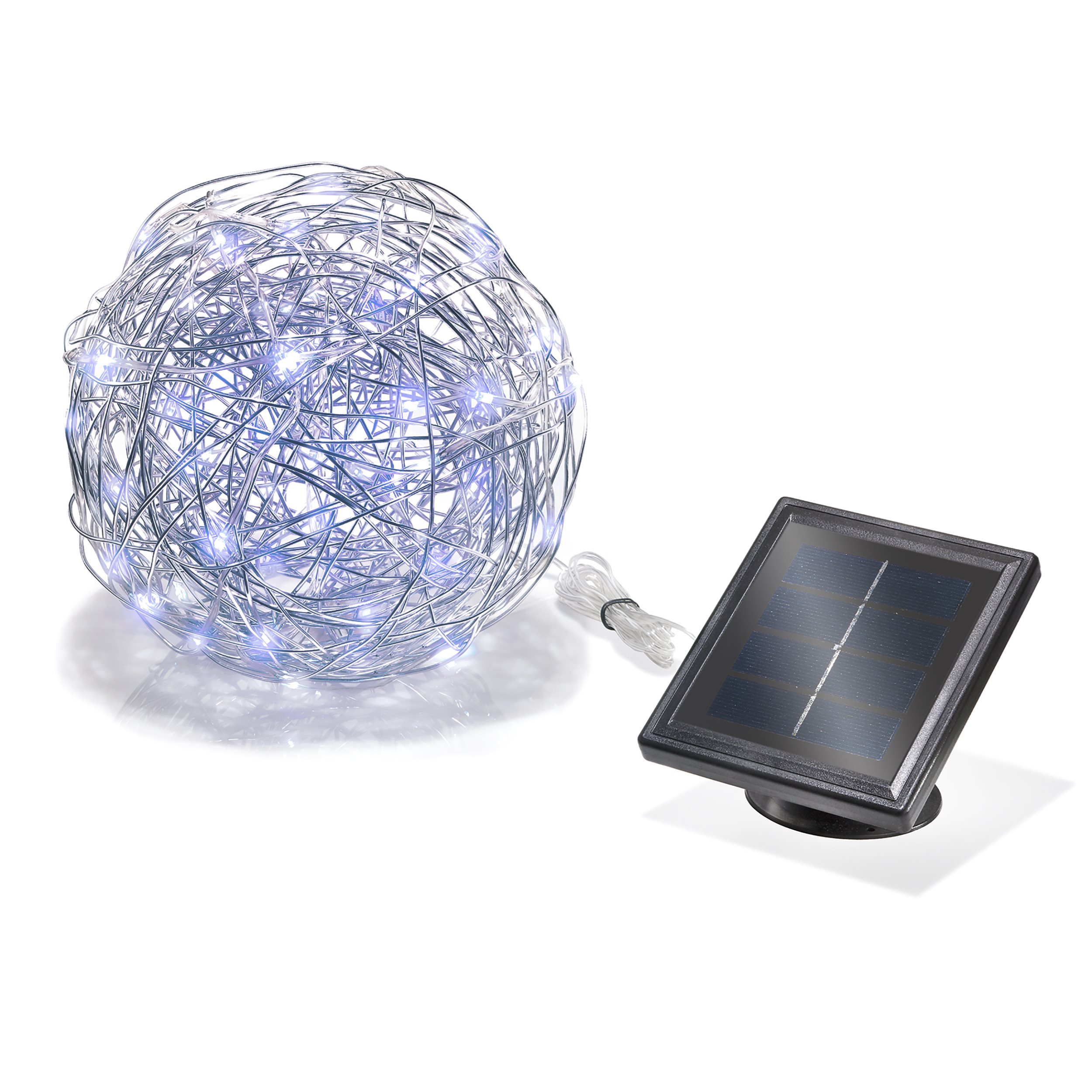 Solar Deko-Drahtkugel ⌀ 25 cm mit 50 kaltweißen LEDs
