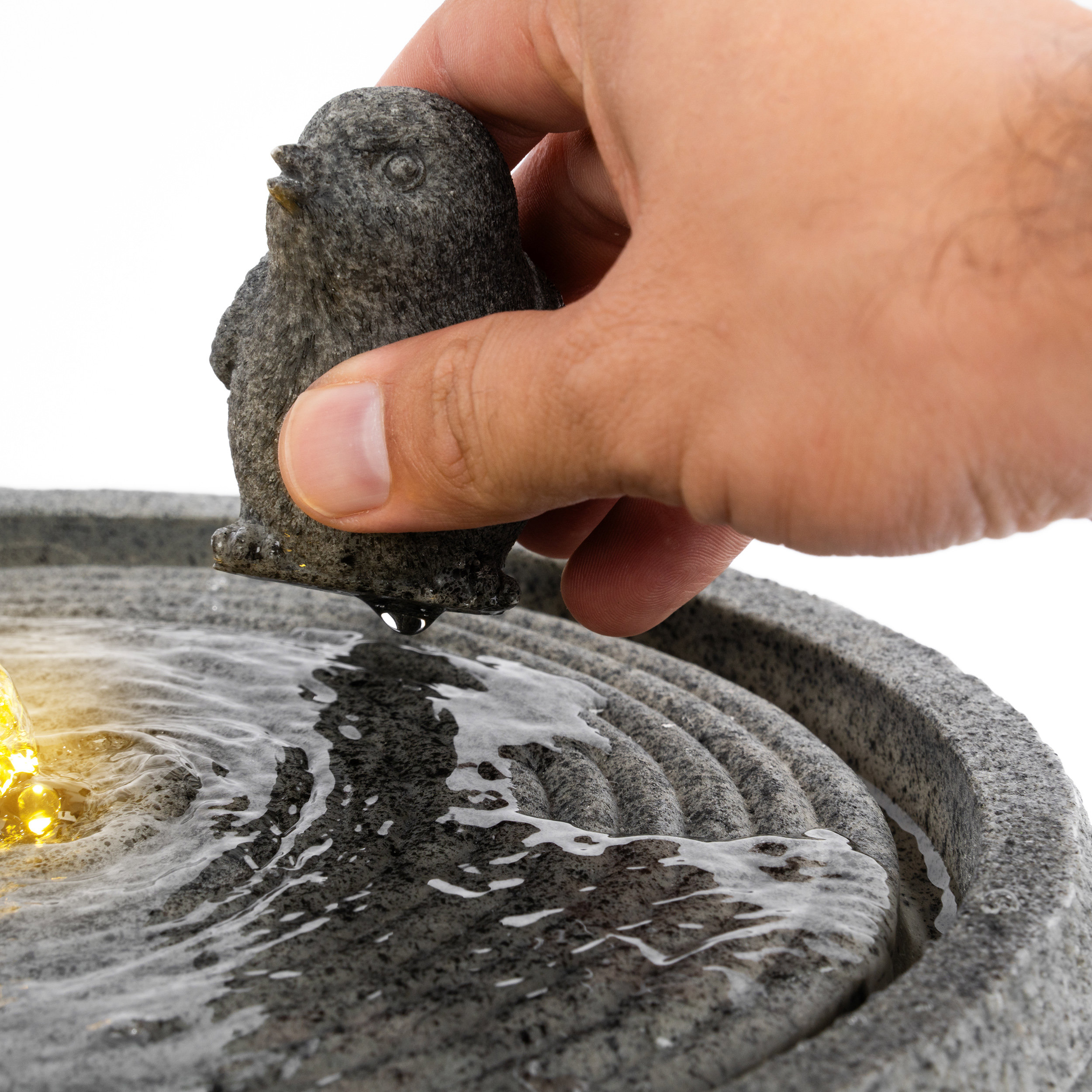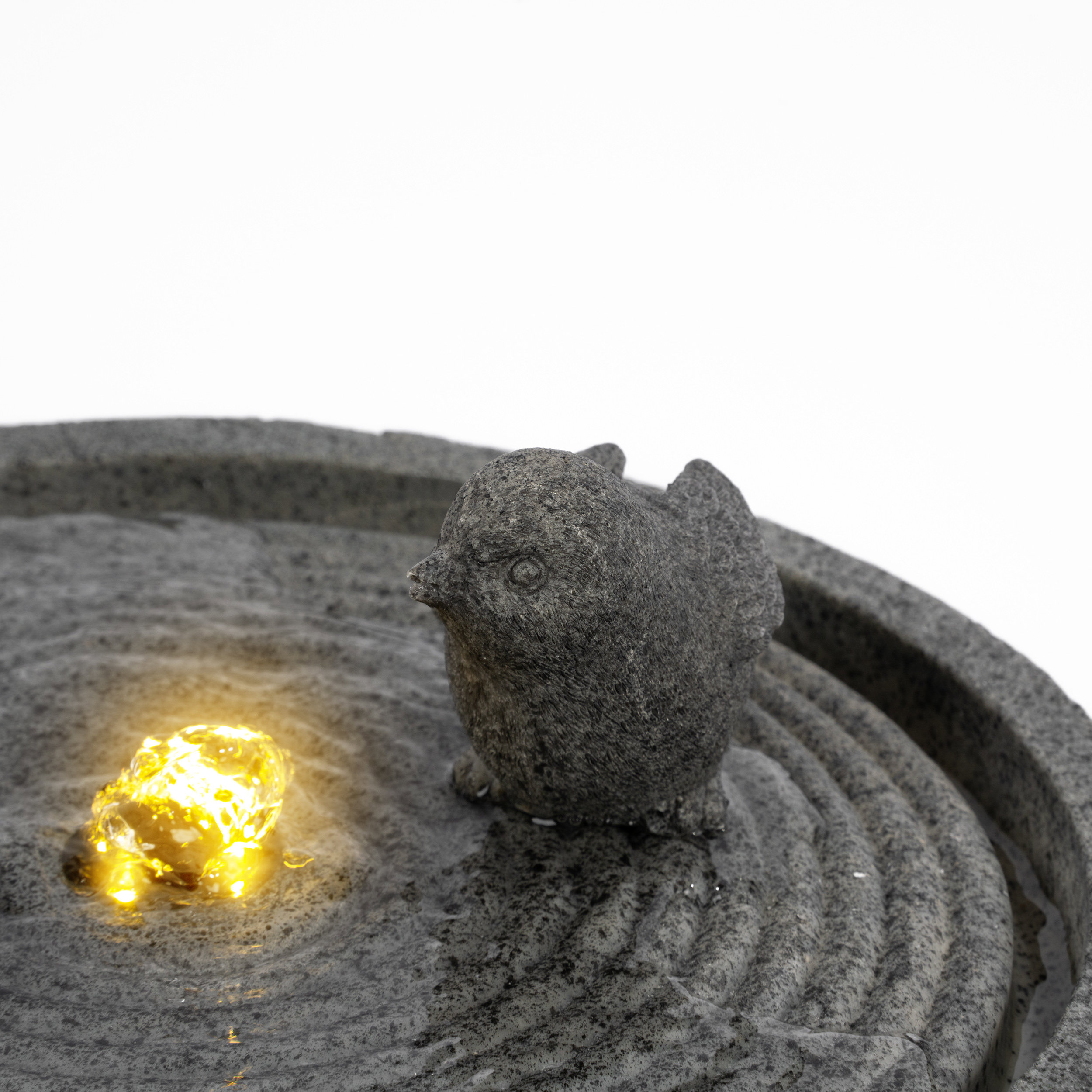 Solar Designbrunnen mit sitzendem Vogelpaar und LED Beleuchtung