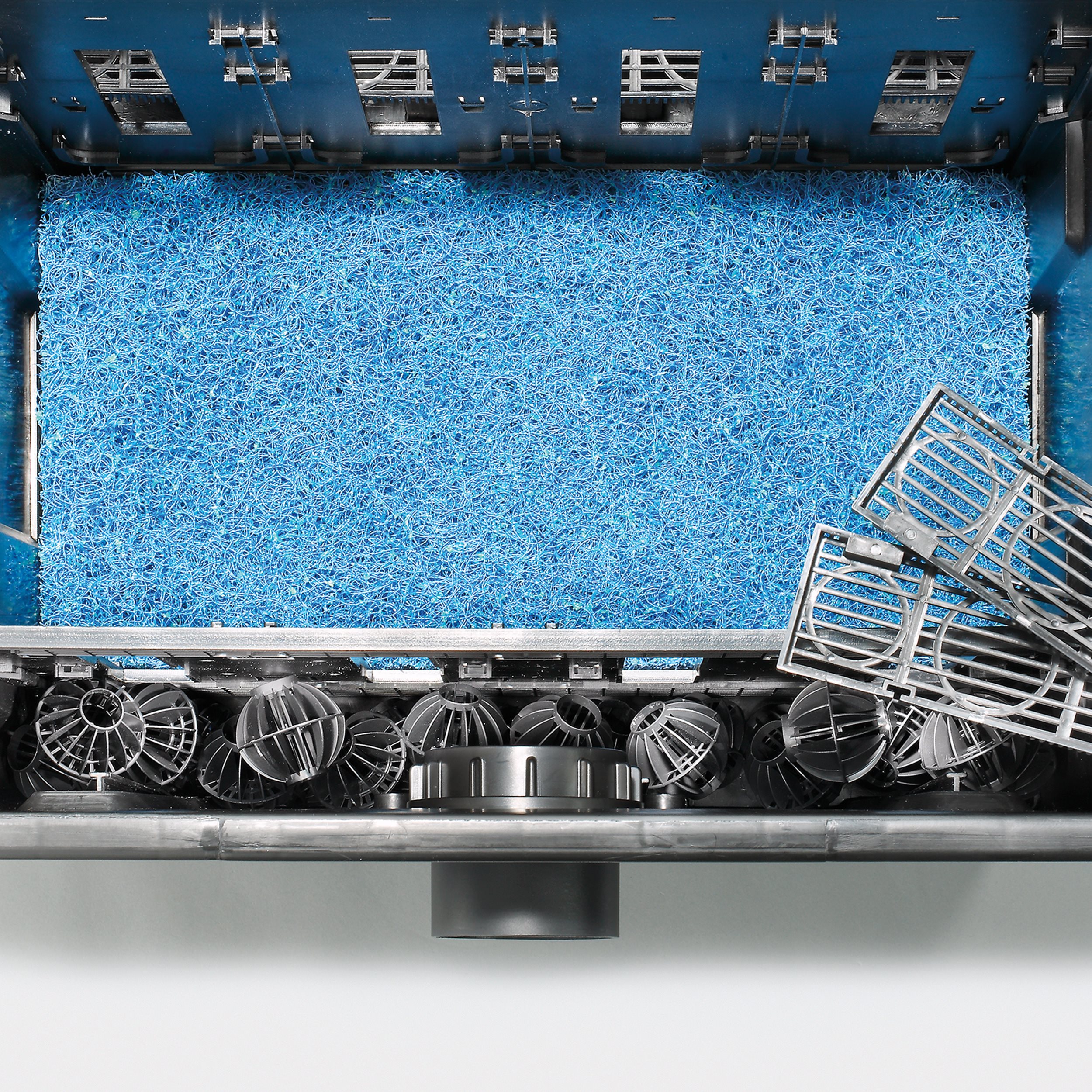 | Enthaltene Filtermedien: | 1 Japanmatte, 2 gelbe und 2 blaue Filterschwämme, Bio-Filterkugeln |