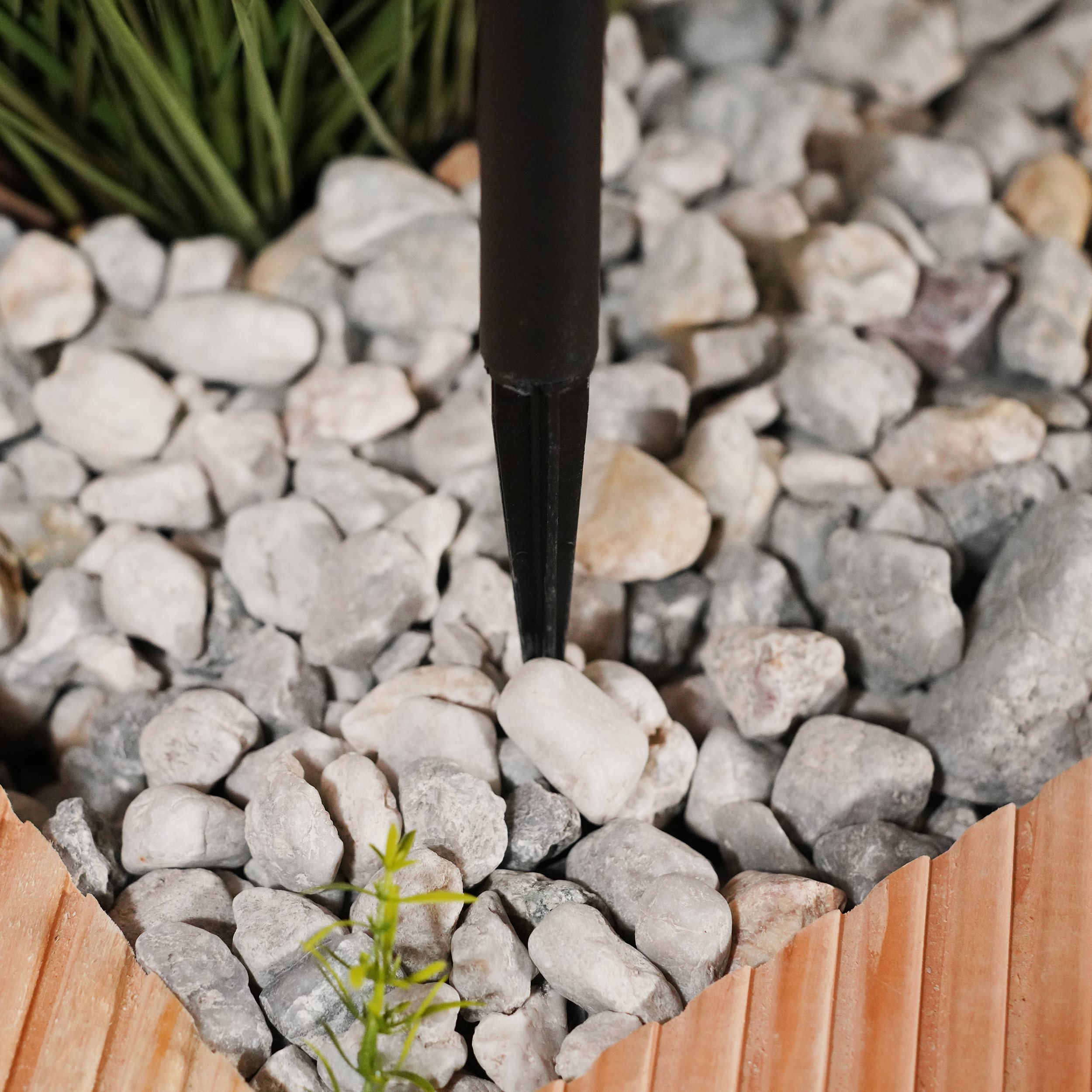 | Produkt besteht aus: | Leuchtenkorpus und Erdspieß aus Kunststoff (schwarz) |