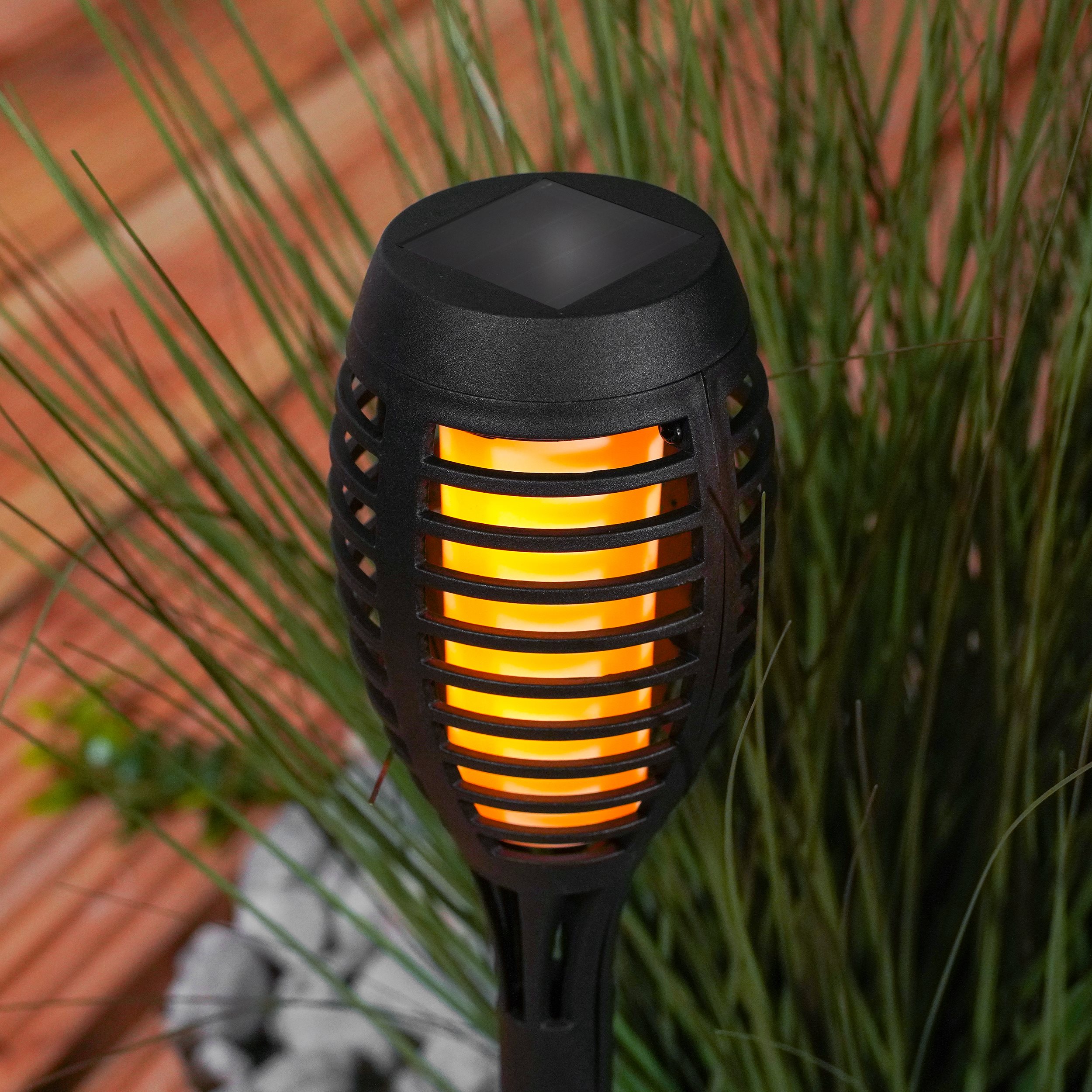 Die Fackeln stecken im Blumentopf und flackern angenehm. Zuerst suchte ich die Bodenspitze und war schon sauer. Aber sie steckte verkehrt rum in Stab. Jedenfalls alles ok und ich bin begeistert.