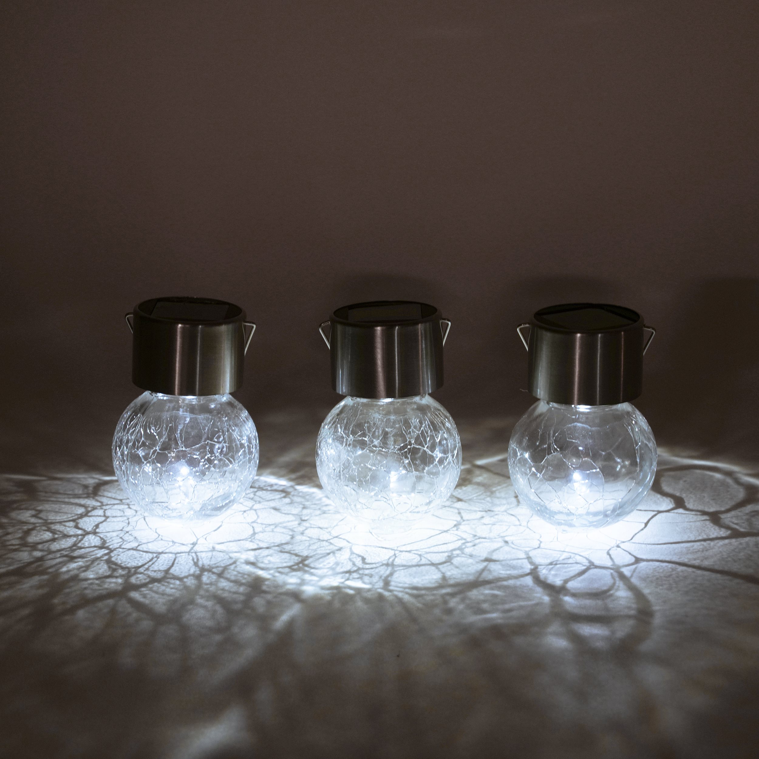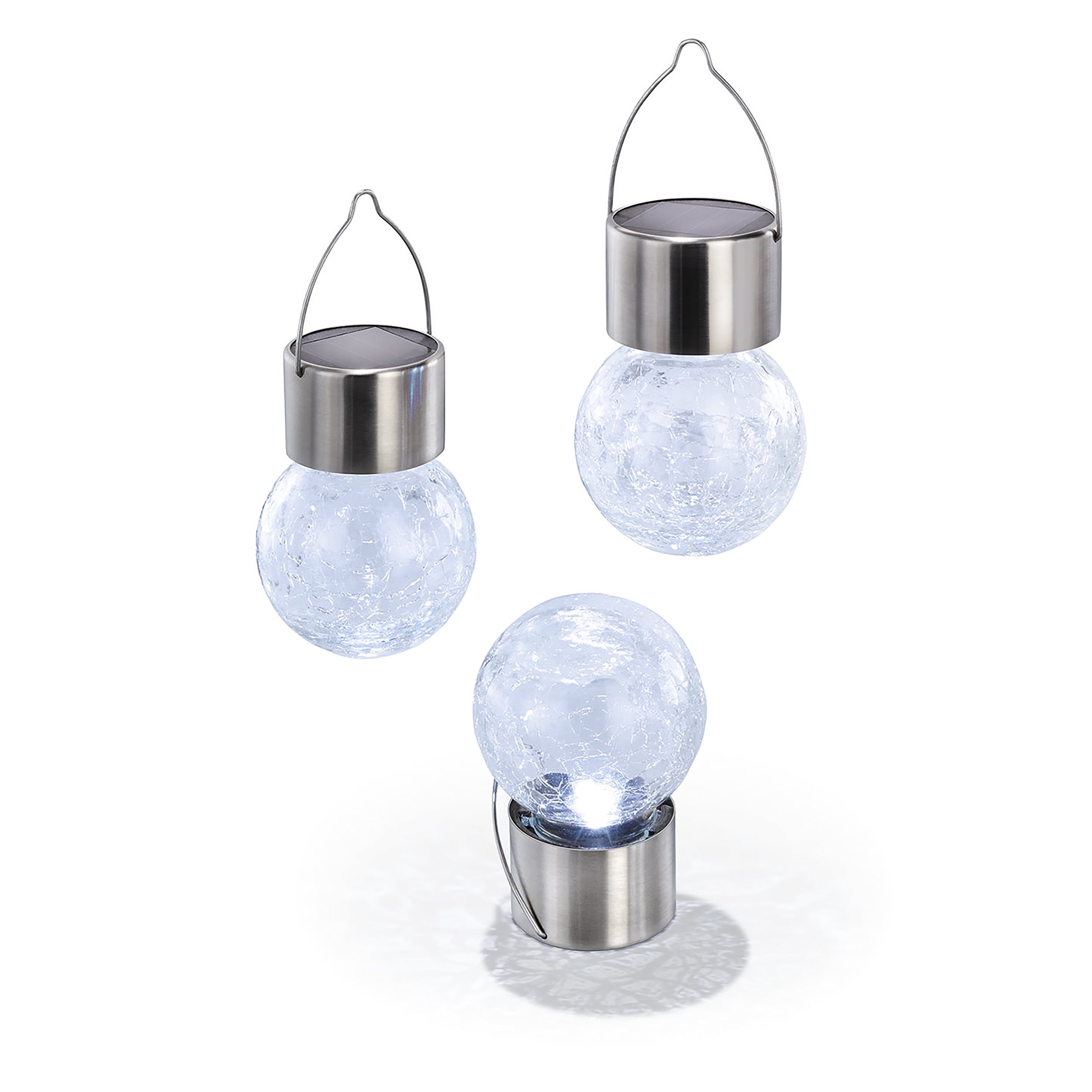 Solar Hängeleuchten 3er-Set Crackle Balls kaltweiß