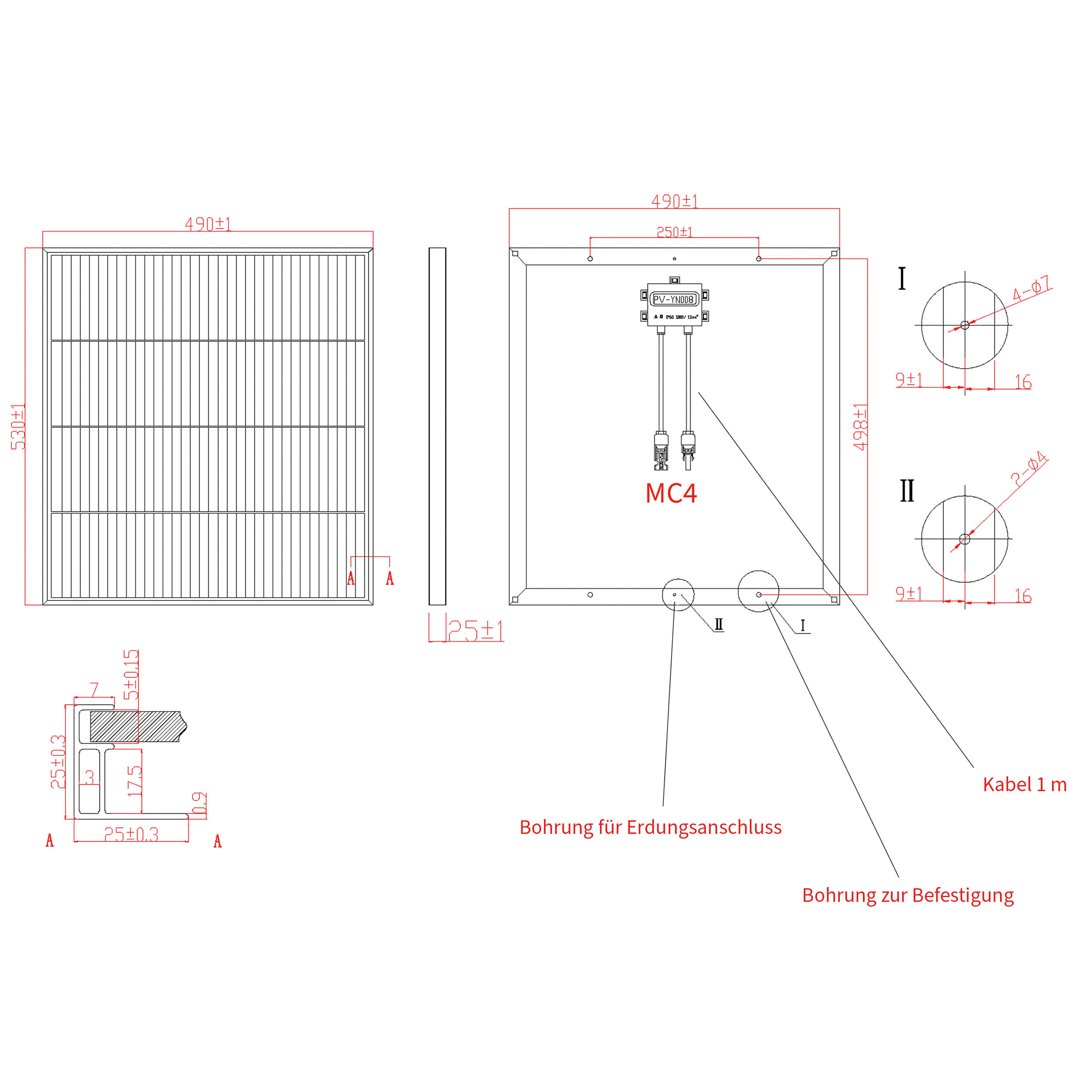- 1 x 5 m Verlängerungskabel mit MC4 kompatiblen Stecker