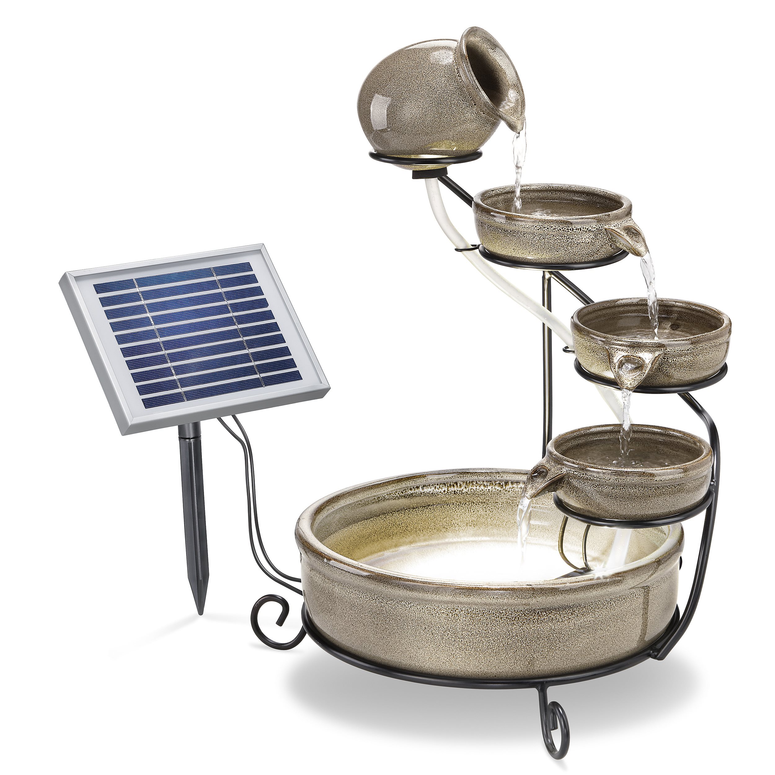 Solar Kaskadenbrunnen Pisa grau mit LED-Beleuchtung