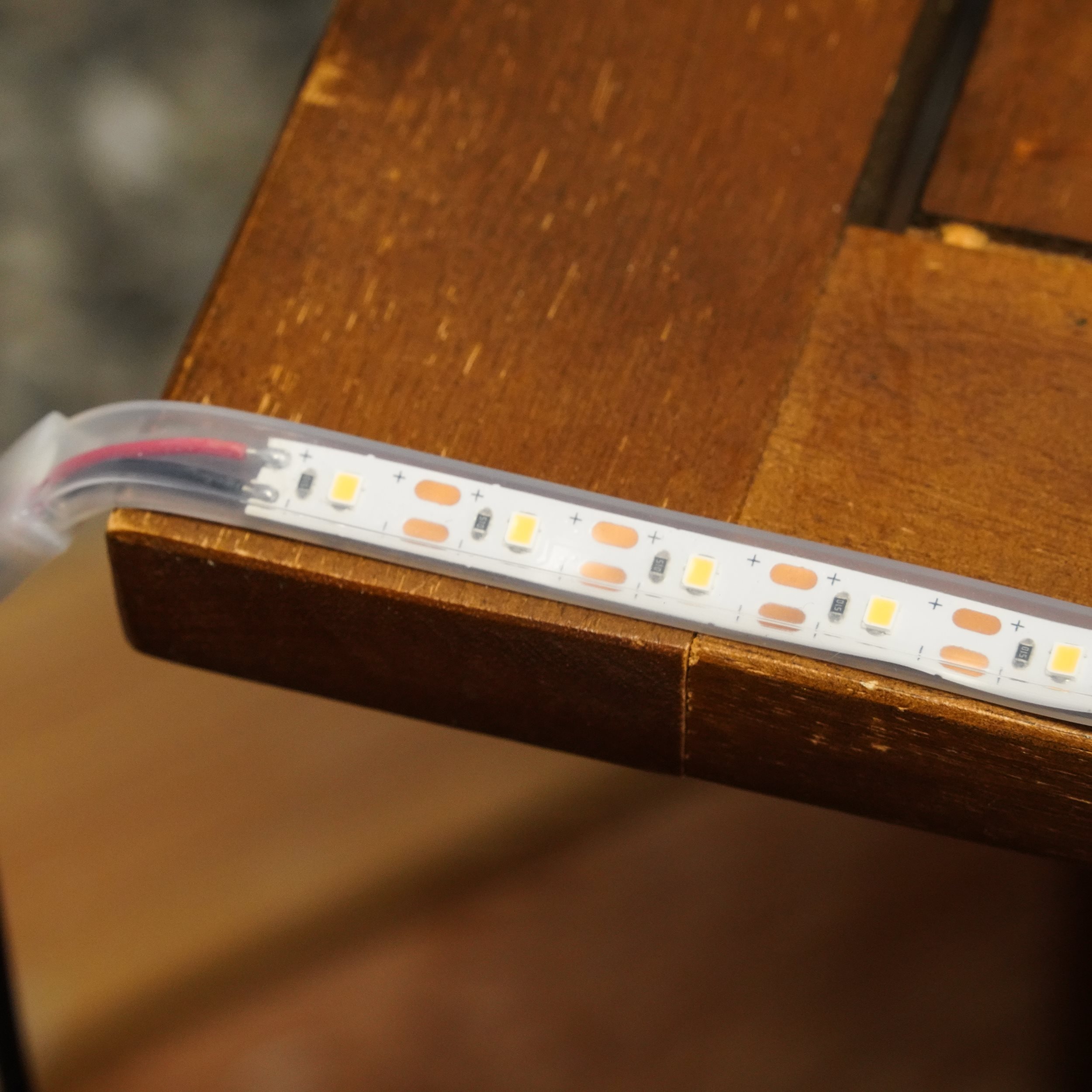 | LED-Streifen aus Kunststoff mit rückseitigem Klebeband (transparent) | |