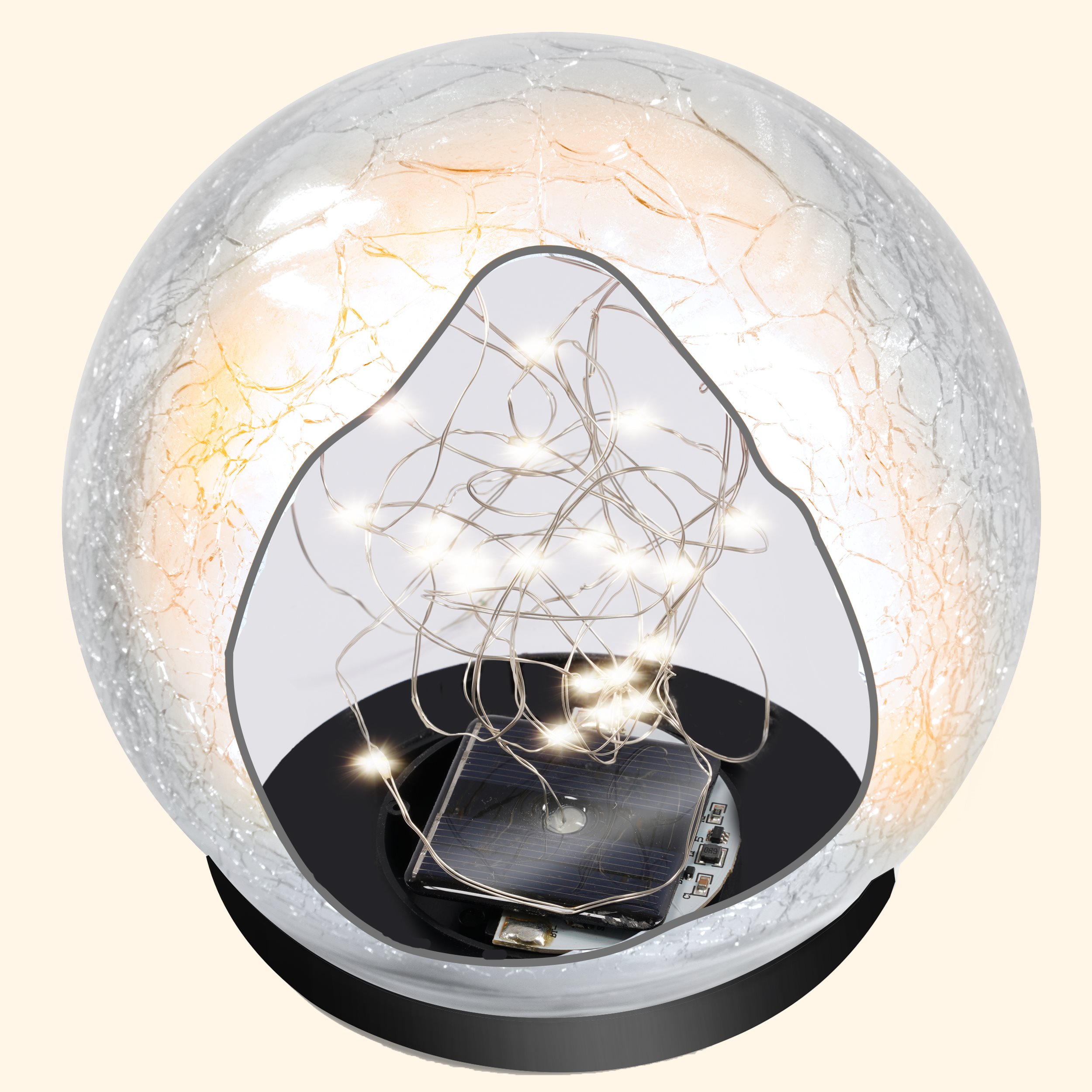 | Produkt besteht aus: | Leuchtkugel aus echtem Glas in Bruchglasoptik |