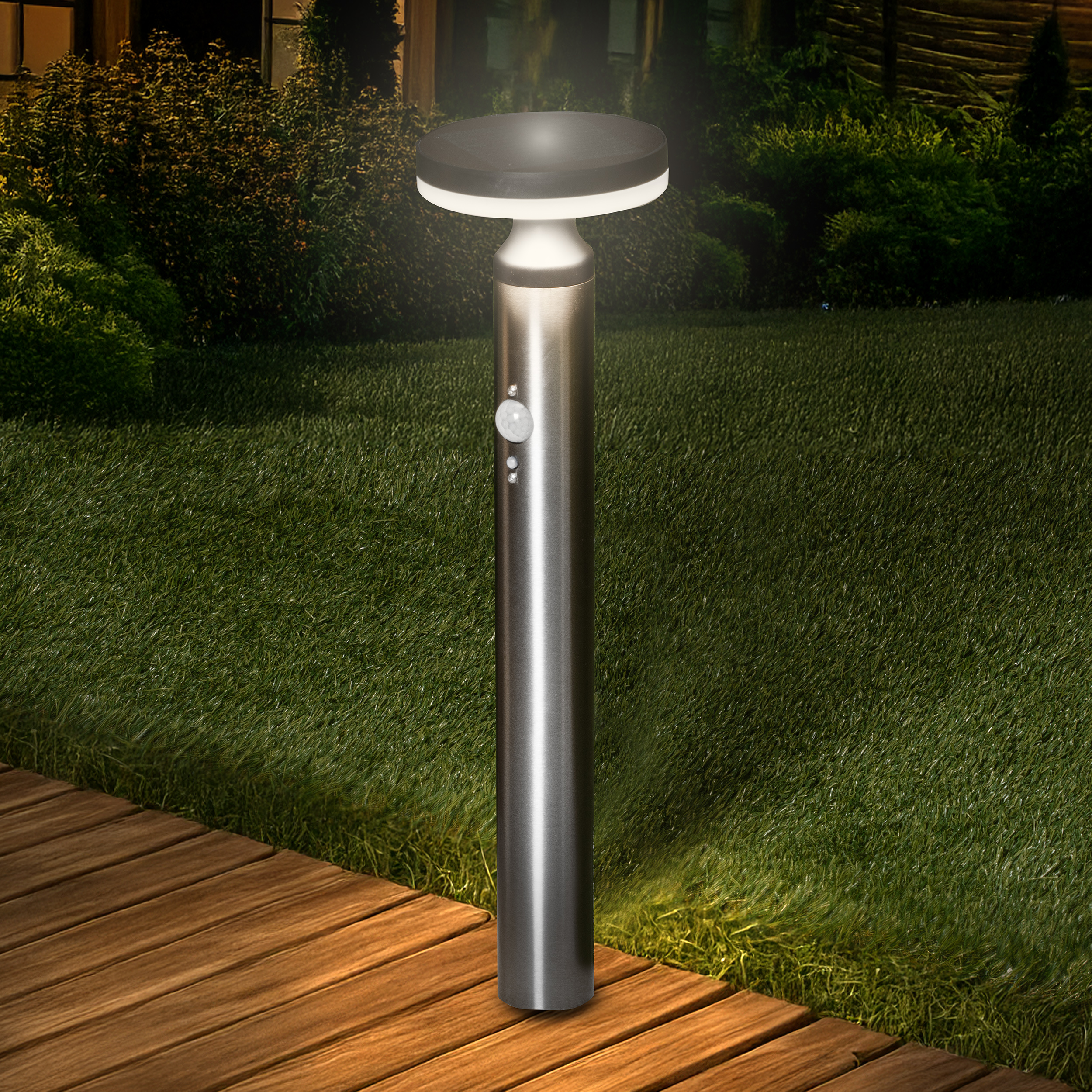 sorgen für eine optimale und gleichmäßige Lichtverteilung um die Leuchte herum. Unsere LEDs zeichnen sich besonders durch Langlebigkeit, geringe Leistungsaufnahme und hohe Leuchtkraft aus. Das monokristalline Solarmodul im „Full Black“-Design ist hinter Glas verbaut In dem Solarmodul an der Oberseite finden leistungsstarke, monokristalline und handverlesene Solarzellen ihren Platz. Das „Full Black“-Design des Solarmoduls rundet das zeitlos moderne Design der Leuchte ab. Wetterfest hinter Glas eingebettet, sorgt das Solarmodul auch bei schlechter Sonneneinstrahlung für bestmögliche Nachladung und einen ungetrübten Einsatz das ganze Jahr über. Langlebiger Lithium-Eisen-Akku Lithium-Eisenphosphat-Akkus sind aktuell die beste Möglichkeit zur Speicherung von Solarenergie. Sie zeichnen sich insbesondere durch ihre hohe Zyklenfestigkeit und ihren hohen Ladewirkungsgrad aus. Bei richtiger Handhabung haben sie eine Lebensdauer von mehreren Jahren. Selbstverständlich kann der Akku am Ende seiner Lebensdauer durch einen neuen ersetzt werden. Massive Edelstahlausführung Die Solarleuchte besitzt ein massives Standrohr aus 50 mm starkem, natürlichem Edelstahl. Dieser verleiht der Leuchte eine besonders gute Standfestigkeit bei langer Lebensdauer. Die Montage kann entweder über einen 16 cm langen Erdspieß oder eine Kunststoffhalterung mit zwei Schrauben erfolgen. Zwei Schrauben mit Dübel sind im Lieferumfang enthalten. |