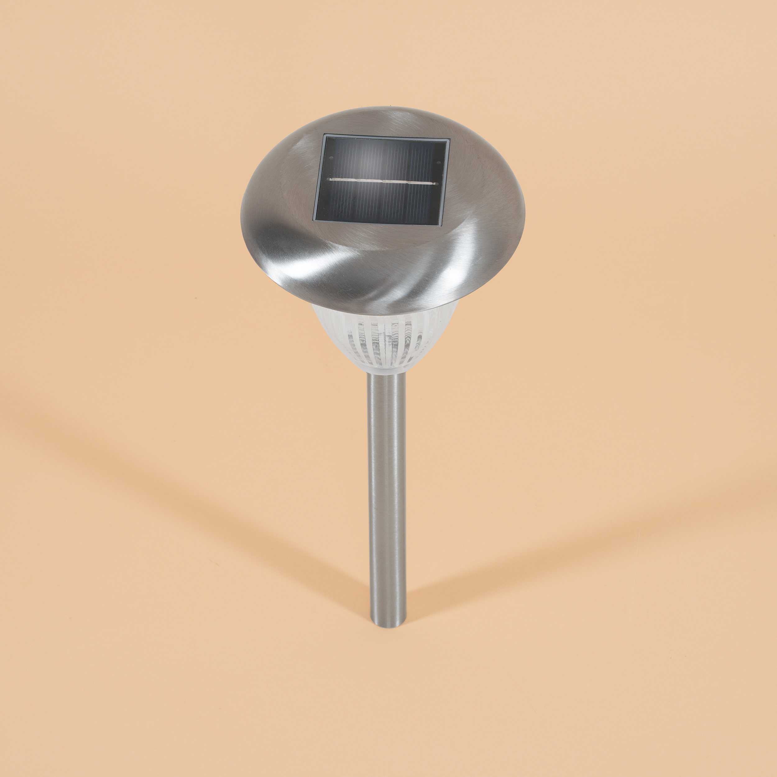 Der Leuchtenkopf ist mit Edelstahl bezogen.