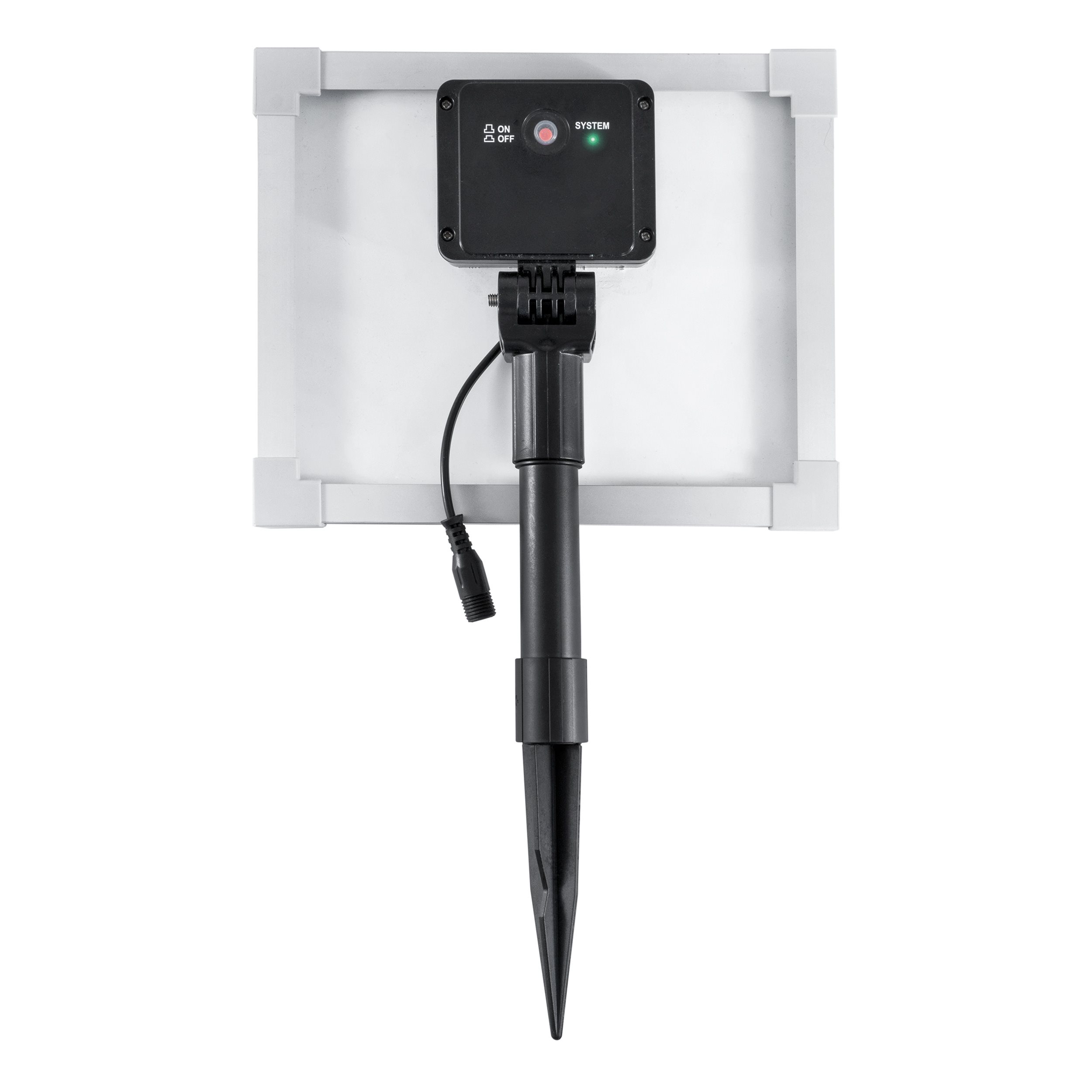 Der elektrische Anschluss erfolgt über ein 3 m langes Kabel mit Stecker. Als Stromversorgung kann ein geeignetes Solarmodul, eine Batterie, oder ein geregeltes Gleichspannungsnetzteil mit einer Spannung von 6 - 9 VDC verwendet werden.