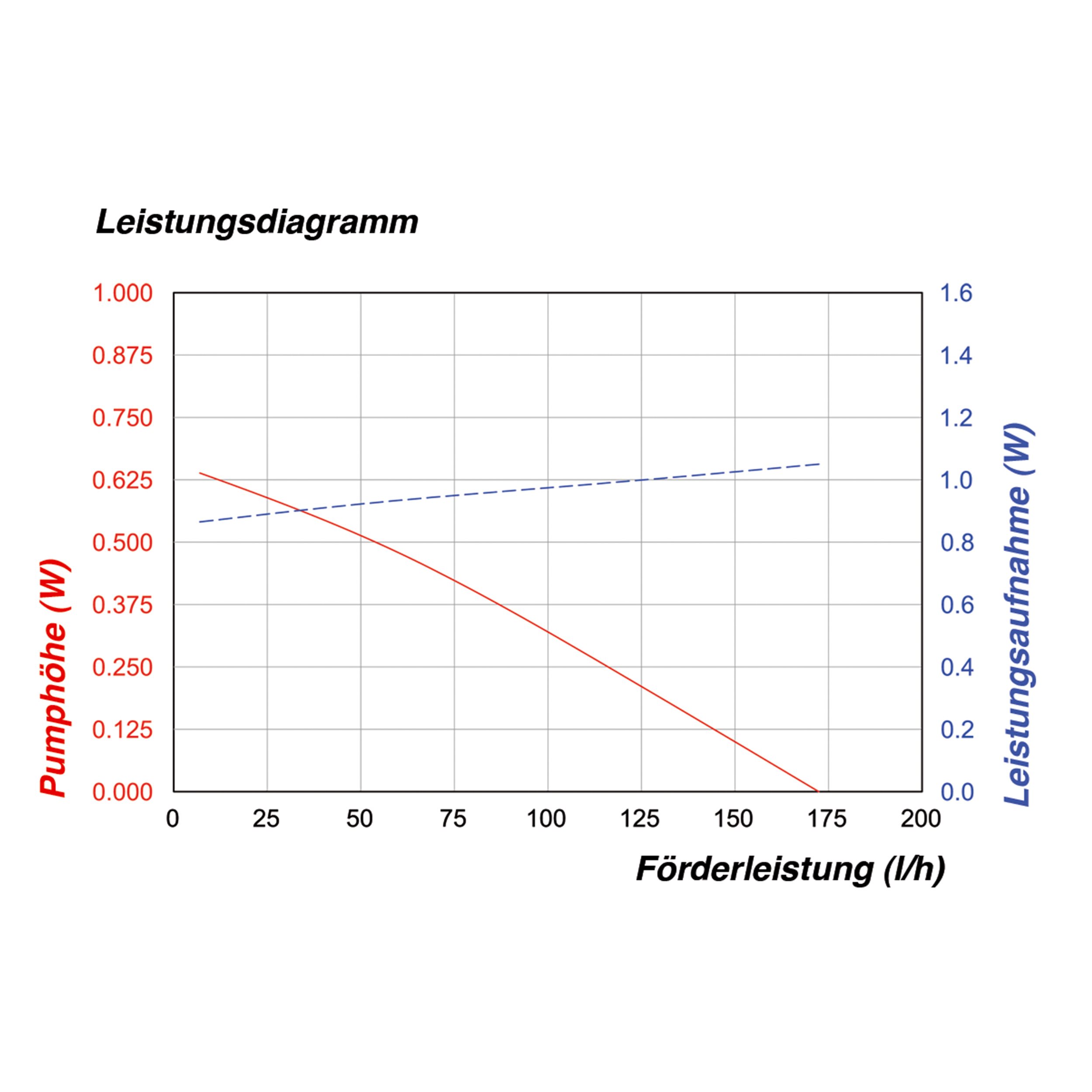 | Förderleistung: | Max. 175 l/h (Kennlinie siehe Bilder) |