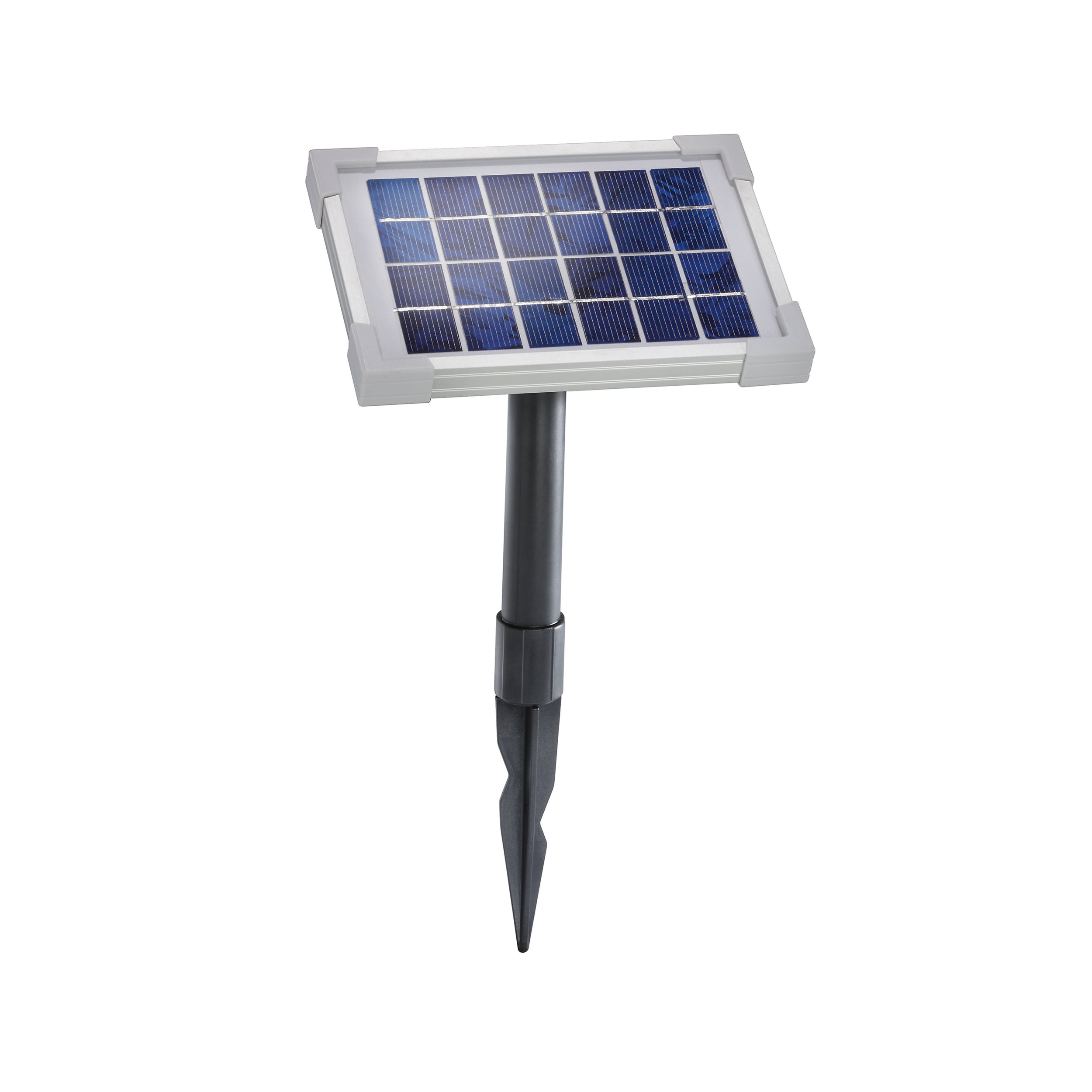 Im Lieferumfang enthalten ist ebenso eine mehrteilige Solarmodul-Halterung aus Kunststoff.