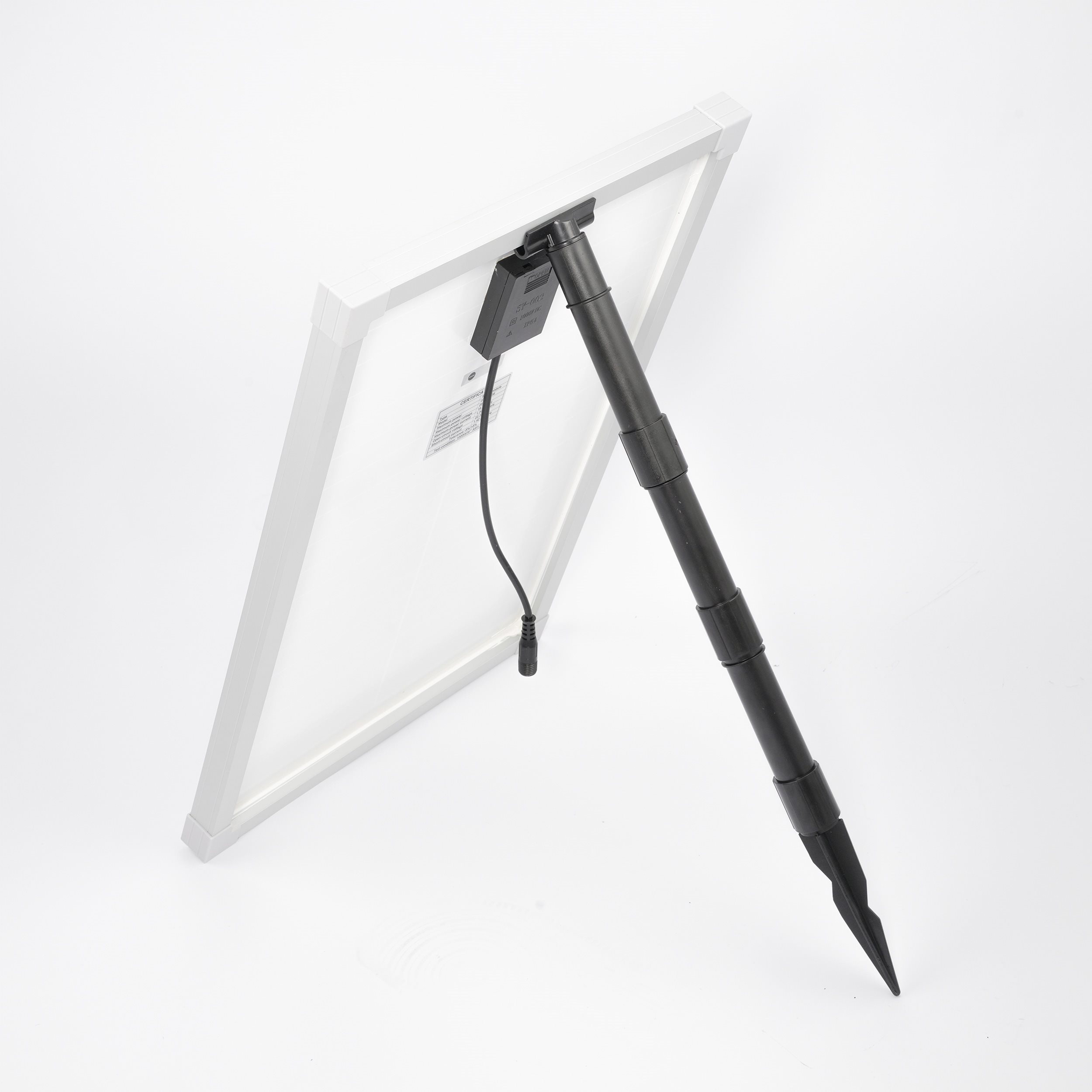 Im Lieferumfang enthalten ist ebenso eine mehrteilige Solarmodul-Halterung aus Kunststoff.