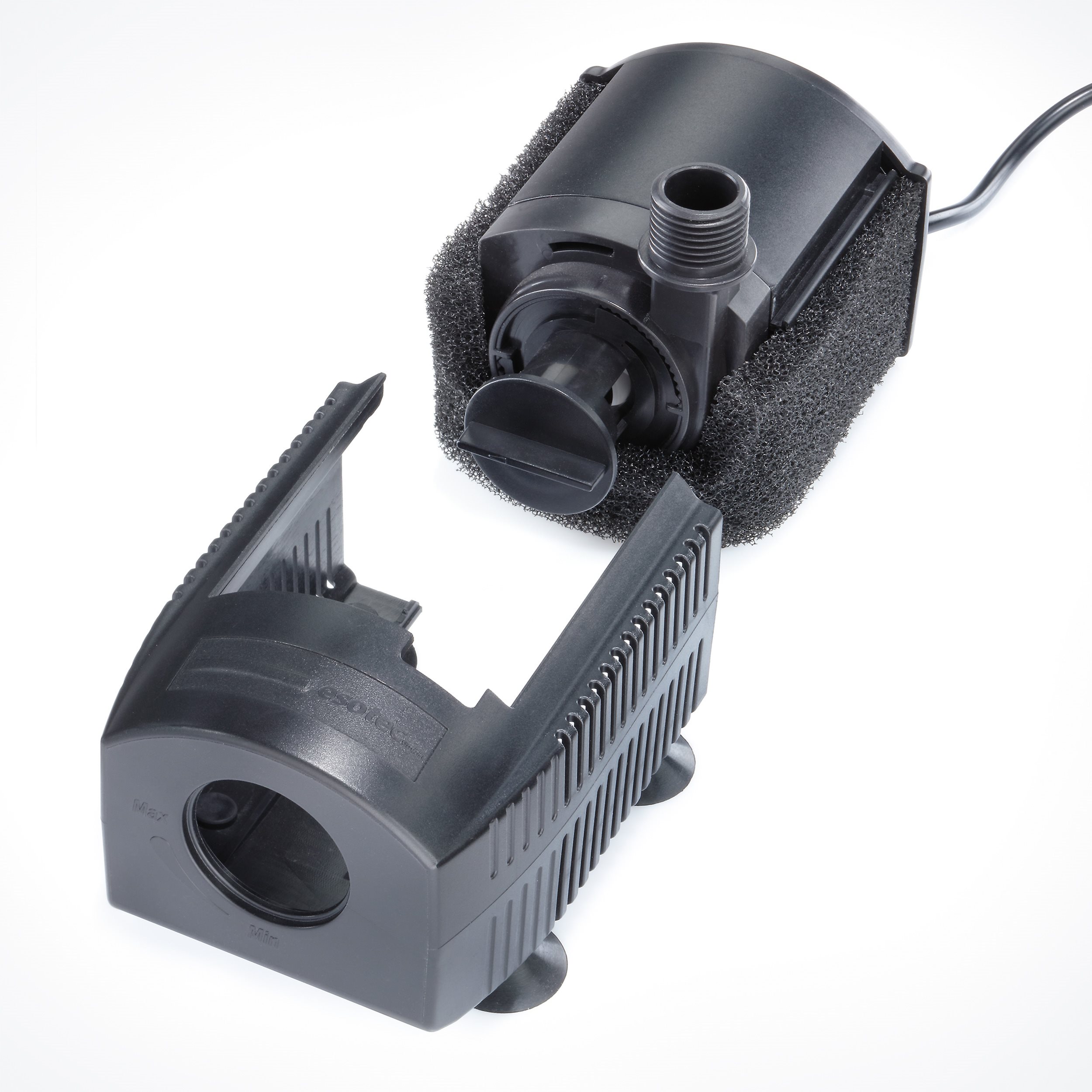 Ein Vorfilterkorb verhindert das Eindringen von groben Schutzpartikeln und somit eine Blockierung der Pumpe. Der elektrische Anschluss erfolgt über ein 5 m langes Kabel mit Stecker.