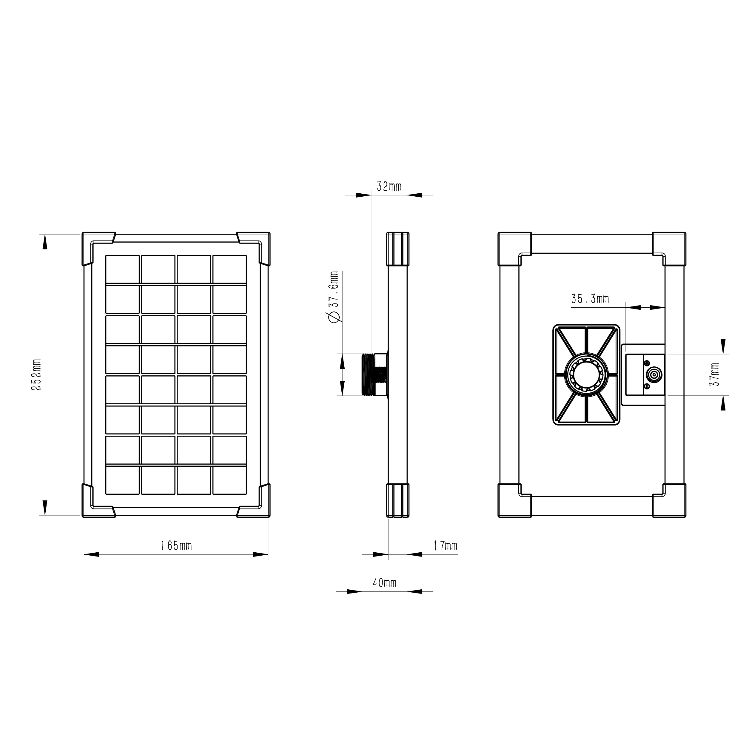 - Das Solarmodul einen Aluminiumrahmen besitzt.