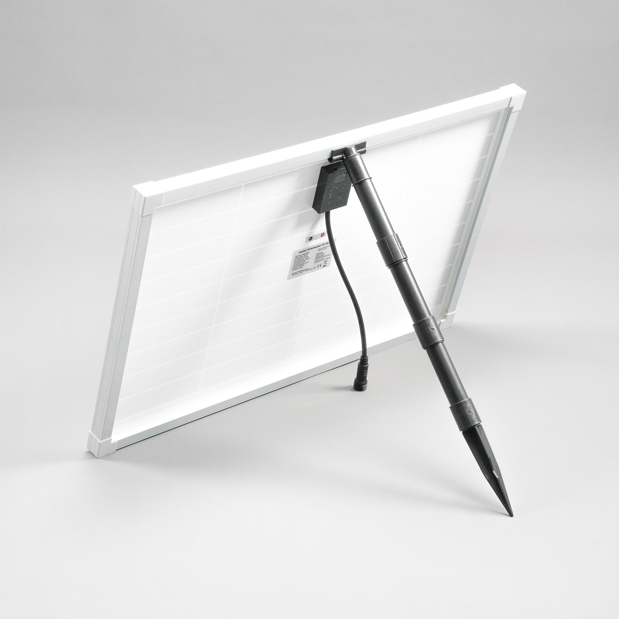 Im Lieferumfang enthalten ist ebenso eine mehrteilige Solarmodul-Halterung aus Kunststoff.