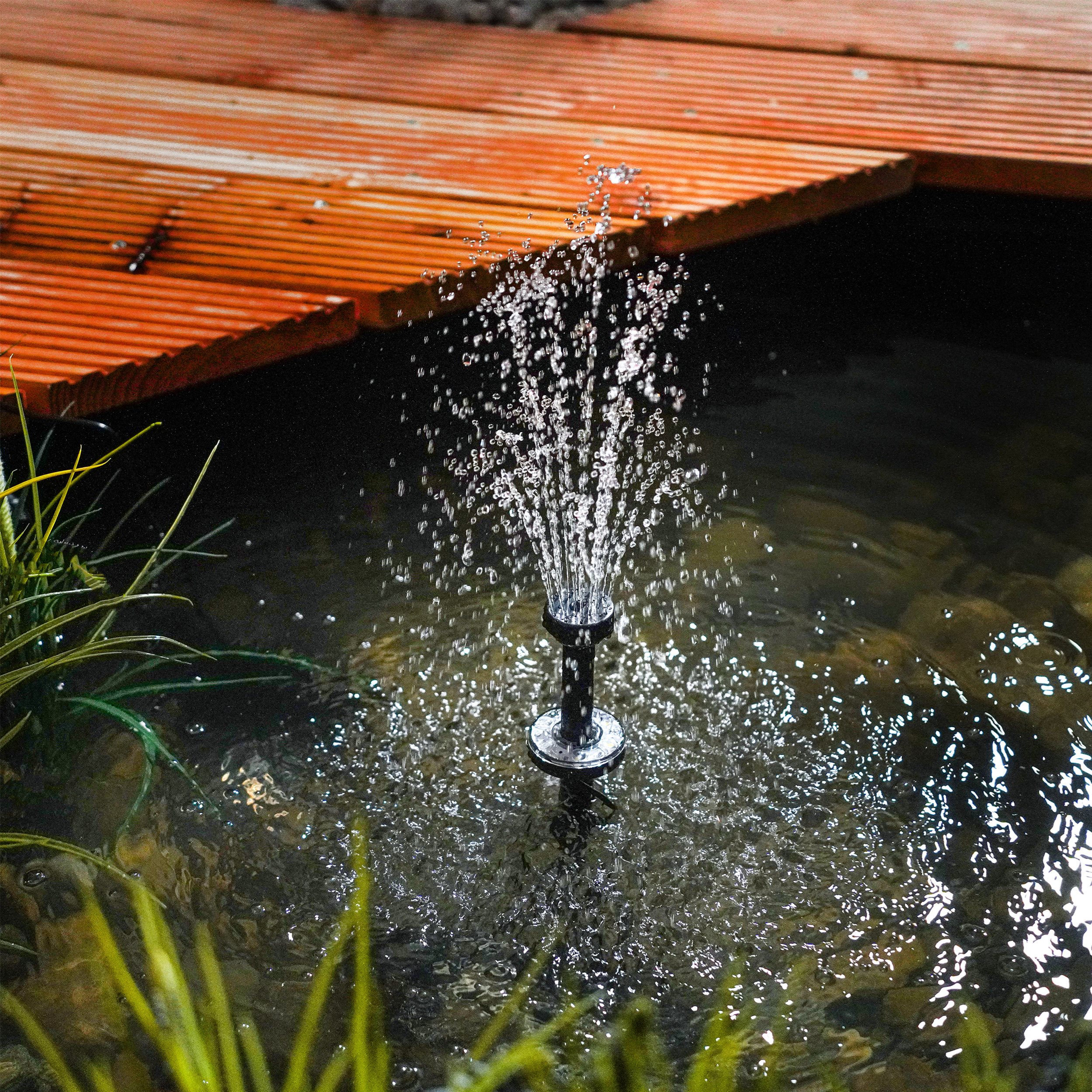 Schnelle Lieferung, Gut erklärte Anleitung. Der kleine, solarbetriebene Teichspringbrunnen funktioniert nach Sonnentagen bis in die Nacht hinein und läuft auch bei bedecktem Himmel tagsüber. Wir können das Produkt für kleine Teiche sehr empfehlen