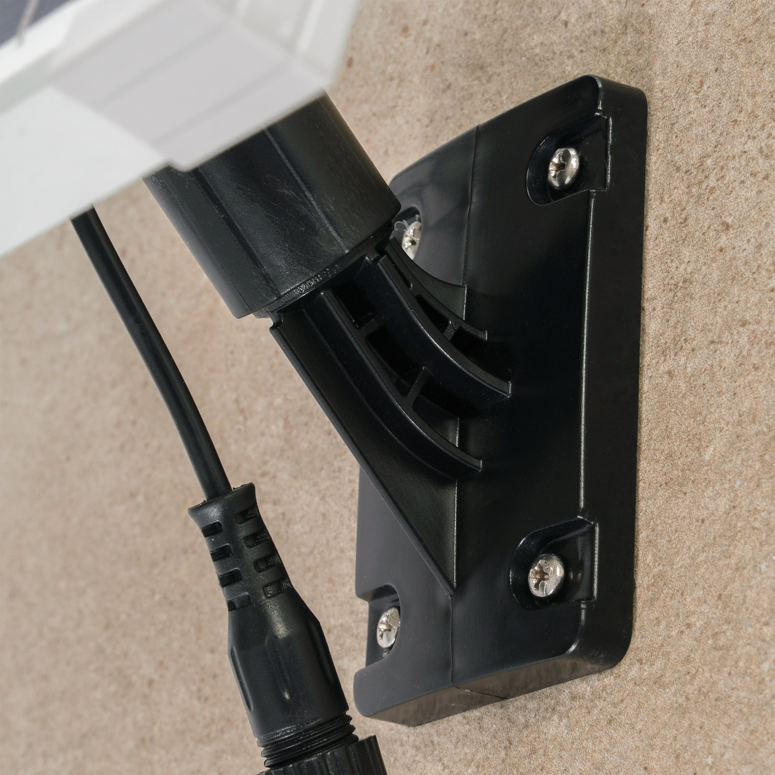 Im Lieferumfang enthalten ist ebenso eine mehrteilige Solarmodul-Halterung aus Kunststoff.
