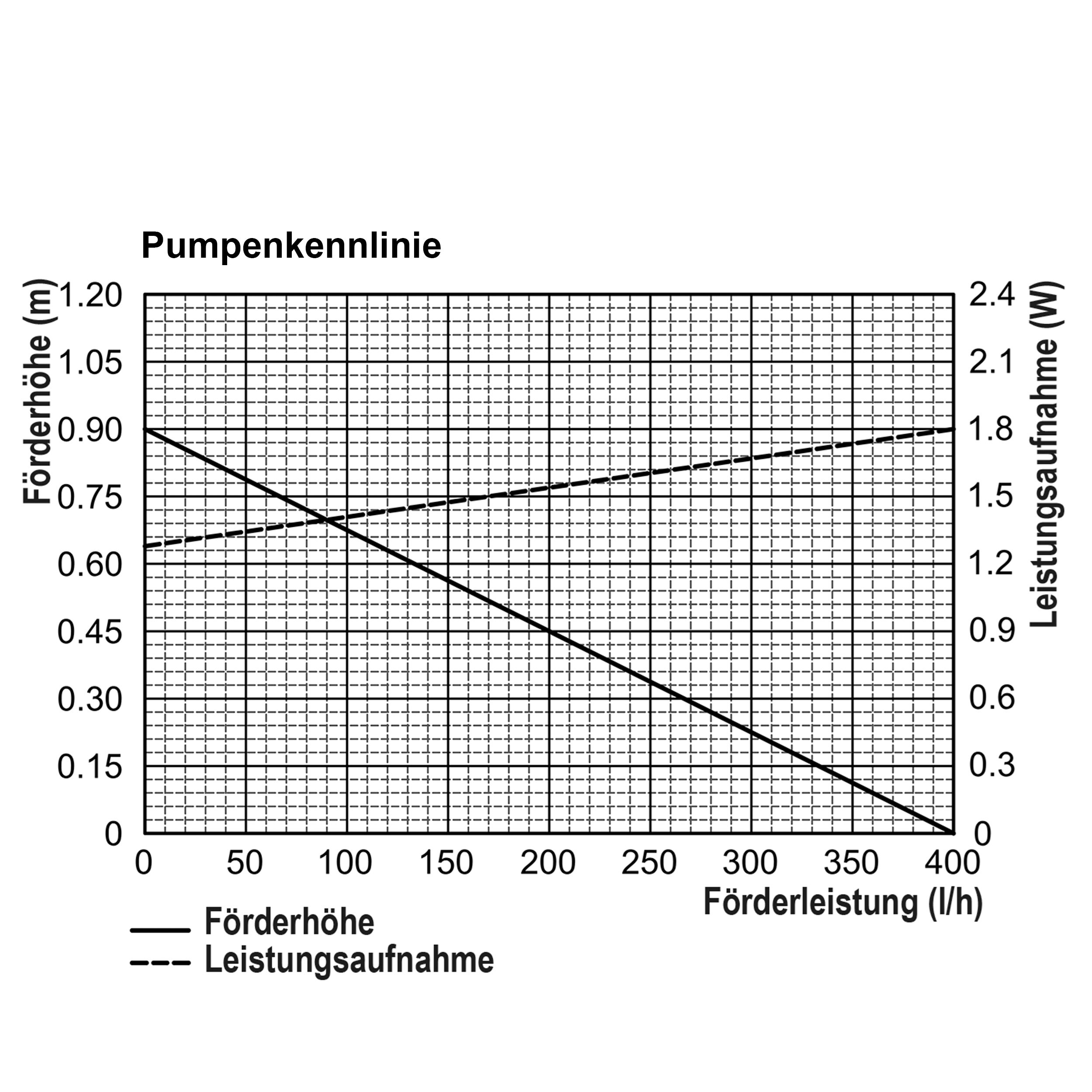 | Förderleistung: | Max. 400 l/h (Kennlinie siehe Bilder) |