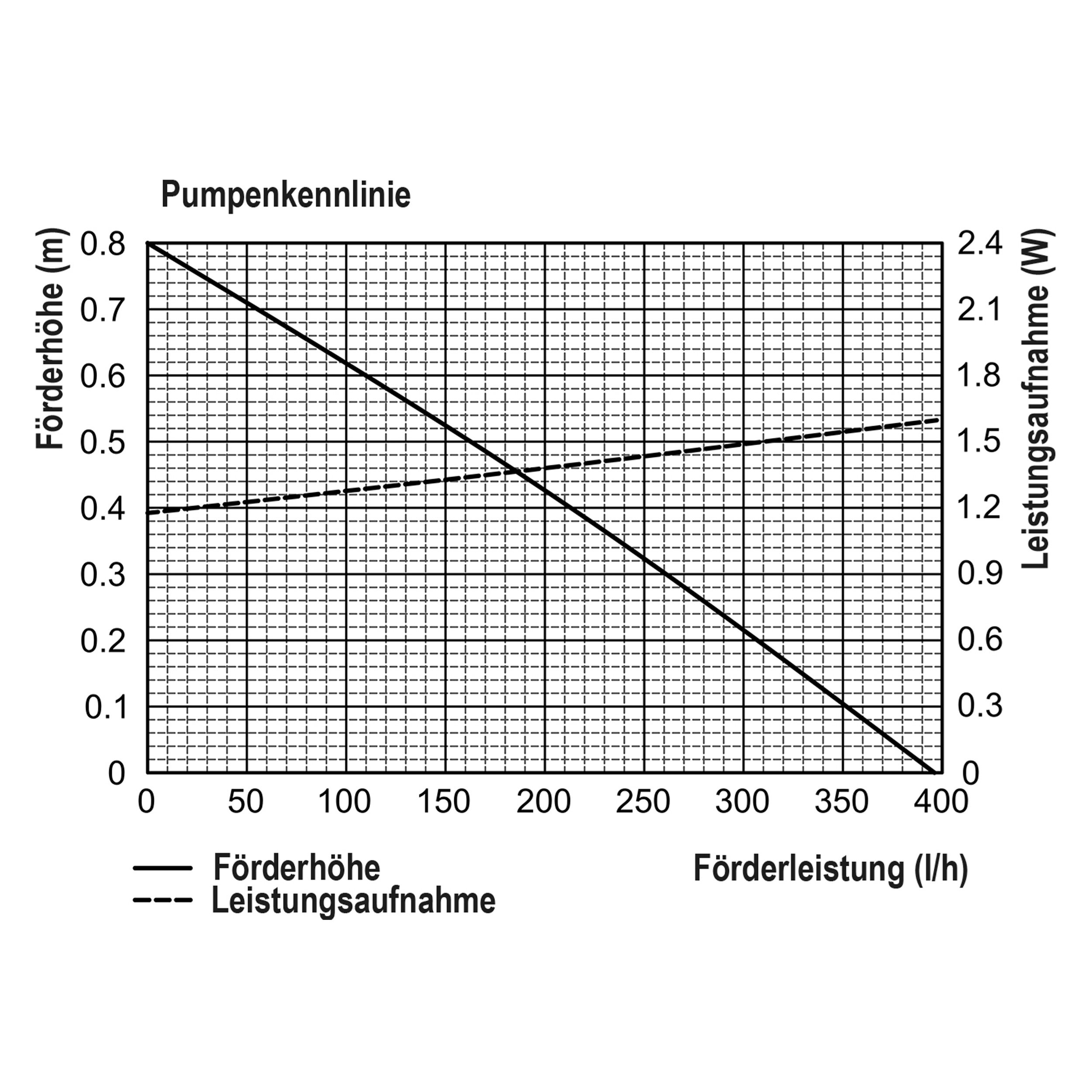 | Förderhöhe: | Max. 70 cm (Kennlinie siehe Bilder) |