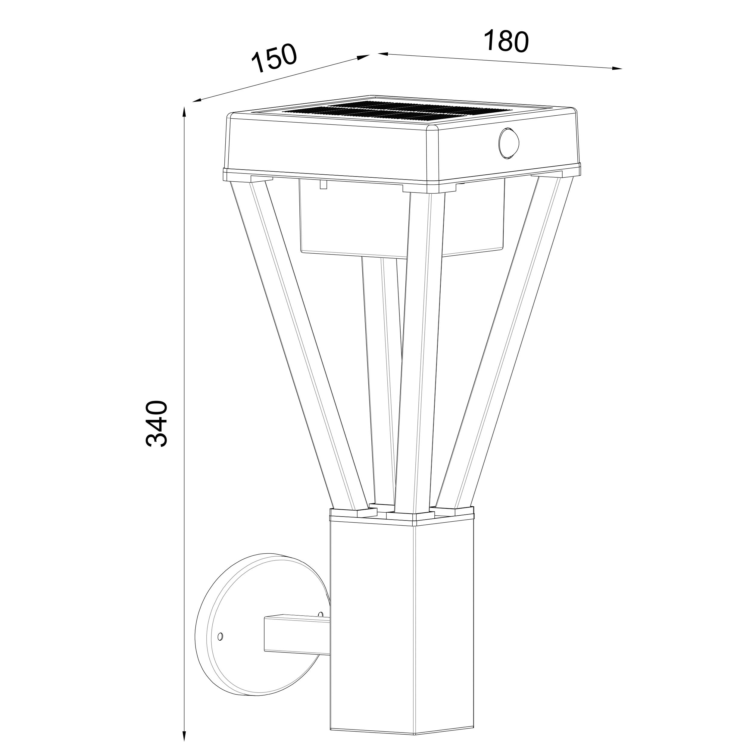 | Abmessungen: | Leuchte gesamt (H x B x T): 365 x 150 x 190 mm |