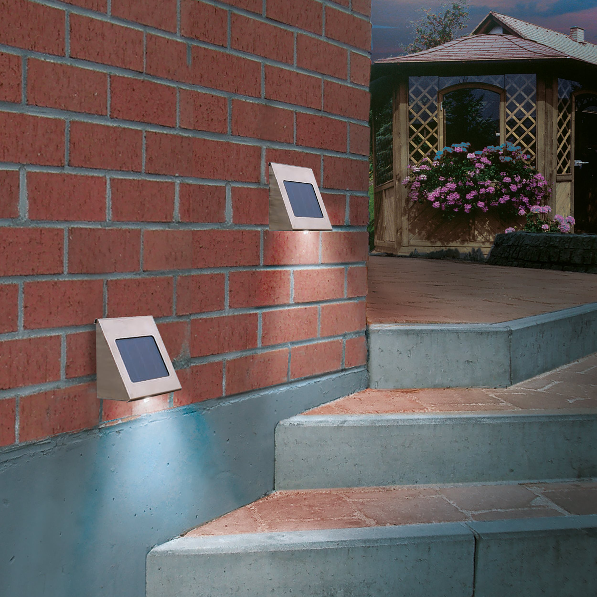 sehr hochwertige Leuchten, leuchten die ganze Nacht unseren Hof aus, Edelstahlgehäuse sehr robust und schön, Akkuwechsel super leicht