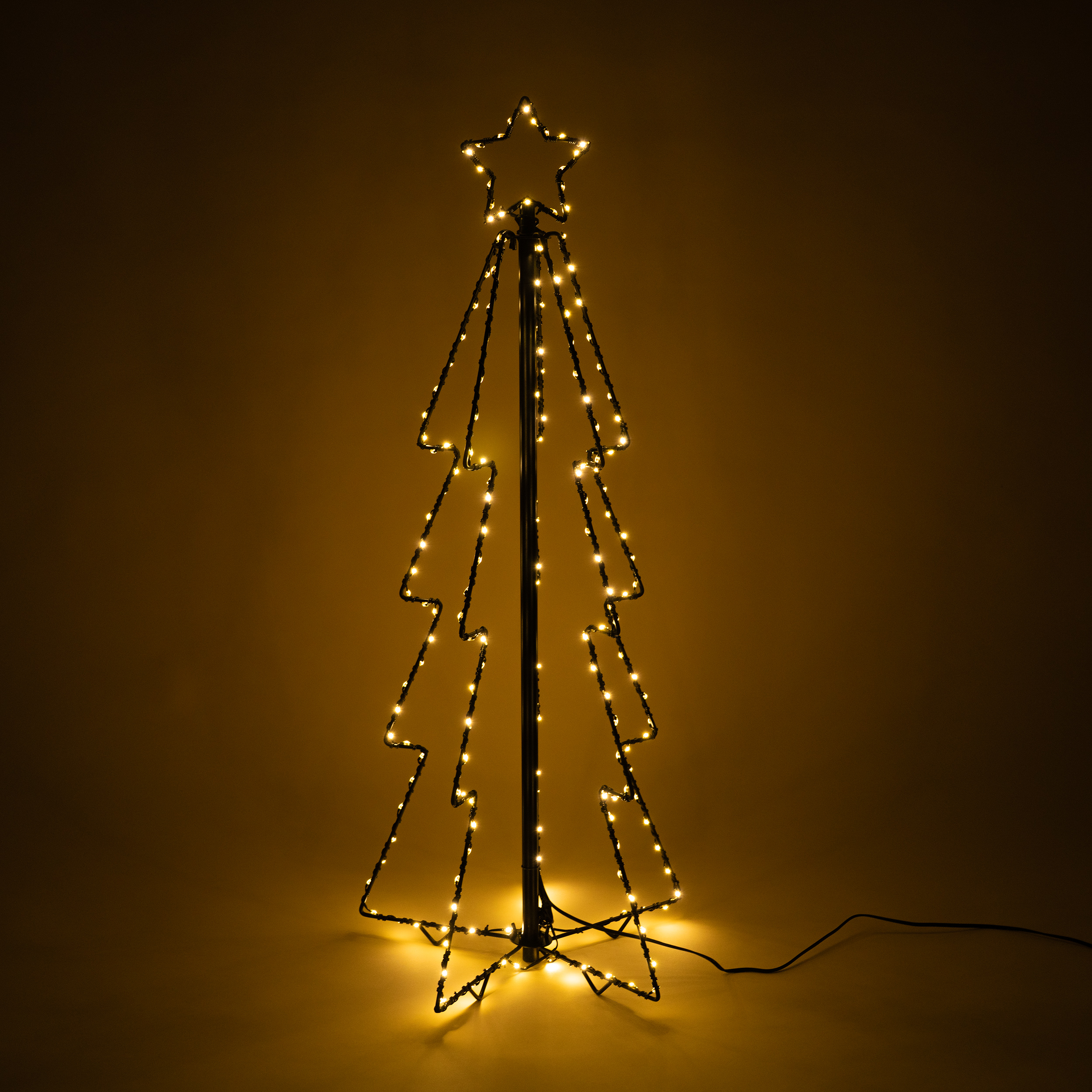 festliche Stunden im Freien. Ein Metallgestell sorgt für Stabilität Der Grundkörper des Weihnachtsbaums besteht aus einem 4 mm starken, schwarz beschichteten Metallgestell. Um dieses Gestell ist eine Lichterkette mit insgesamt 200 Micro-LEDs gewickelt, die die Konturen der Baums bei Nacht beleuchtet. Die schwarze Kabelfarbe fügt sich harmonisch in das Metallgestell und Design des Produktes ein. Der Weihnachtbaum wird einfach aufgeklappt, die einzelnen Metallstäbe sind oben und unten fixiert und über Erdheringe kann er zusätzlich und wetterfest im Boden befestigt werden. Zusammengeklappt ist er kaum größer als ein Schuhkarton – ideal für platzsparende Lagerung. Leistungsstarkes, polykristallines Solarmodul In dem Solarmodul an der Vorderseite finden handverlesene, leistungsstarke, polykristalline Solarzellen ihren Platz. Diese sind wetterfest hinter Glas eingebettet und sorgen auch bei Tageslicht oder schlechter Sonneneinstrahlung für bestmögliche Nachladung des Akkus und einen ungetrübten Einsatz in der Weihnachtszeit. Das Solarmodul kann über einen Erdspieß in den Boden gesteckt oder über Schrauben an der Wand montiert werden. Über ein Gelenk kann das Solarmodul optimal zur Sonne ausgerichtet werden. Langlebiger Lithium-Akku Lithium-Akkus sind aktuell eine der effektivsten Möglichkeiten zur Speicherung von Solarenergie. Sie zeichnen sich insbesondere durch ihre hohe Zyklenfestigkeit und ihren hohen Ladewirkungsgrad aus. Bei richtiger Handhabung haben sie eine Lebensdauer von mehreren Jahren. Selbstverständlich kann der Akku am Ende seiner Lebensdauer durch einen neuen ersetzt werden. |