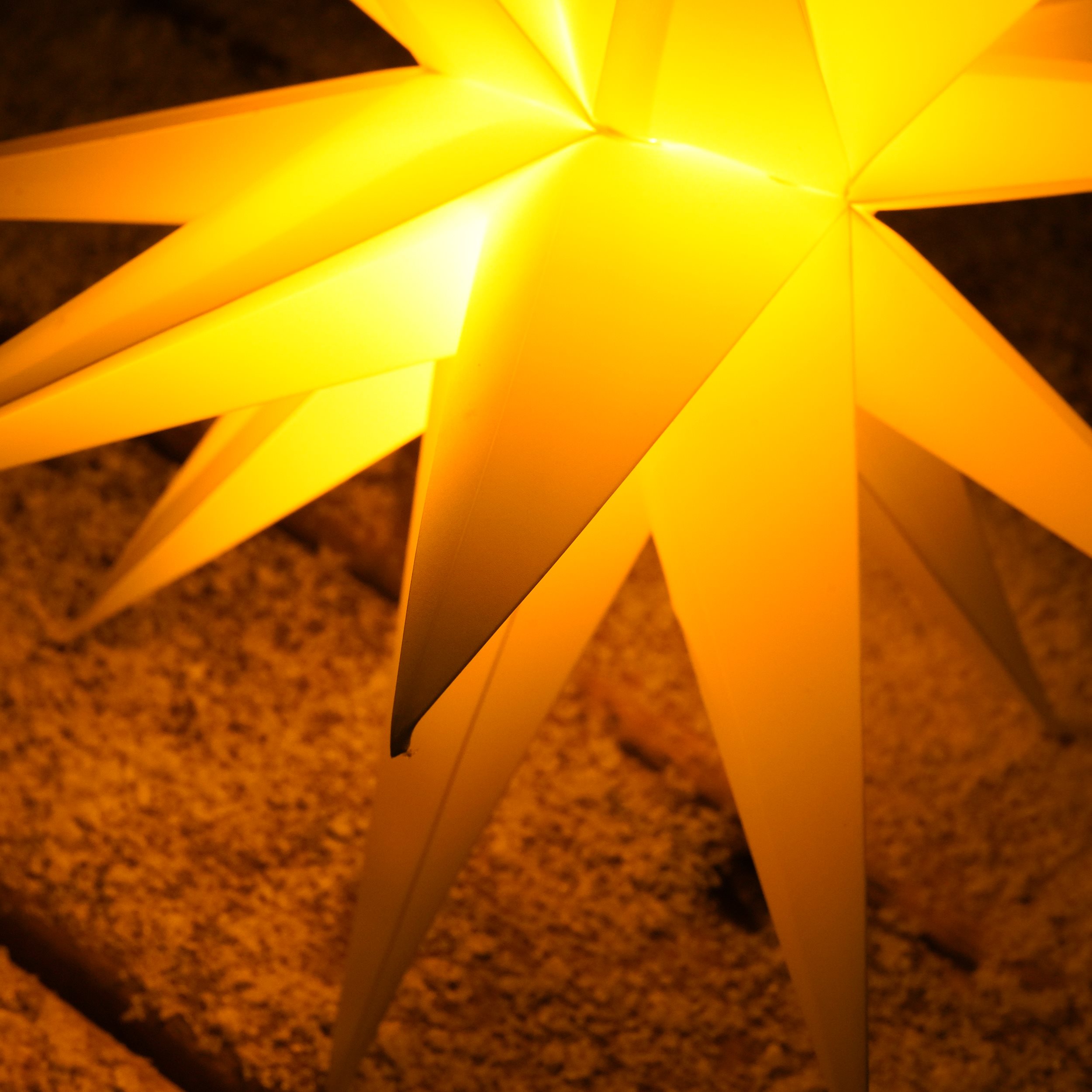 Der Stern besteht aus lichtdurchlässigem weißen Kunststoff, der das Licht gleichmäßig und sanft streut. Dank des hochwertigen 1,5 Wp Solarmoduls lädt sich der integrierte LiFe-Akku tagsüber zuverlässig auf und versorgt den Stern mit Energie. Besonders praktisch ist die Dauerlicht-Funktion, die das warmweiße oder bernsteinfarbene Licht kontinuierlich leuchten lässt – ideal für die Weihnachtszeit, um eine festliche und gemütliche Atmosphäre zu schaffen.