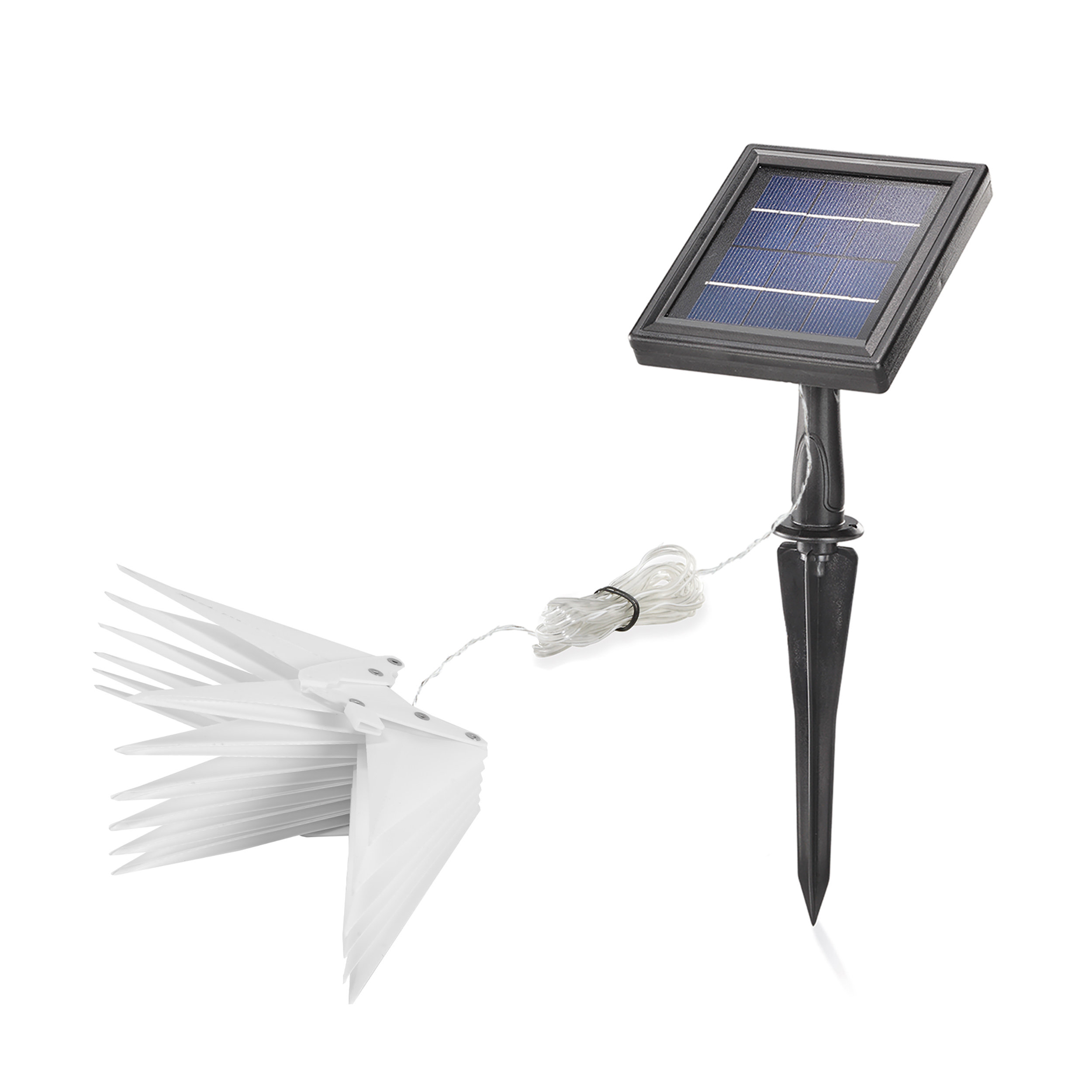 • 1 x Solar Weihnachtsstern mit 5 m Kabel und Solarmodul mit Akku (fest verbunden)