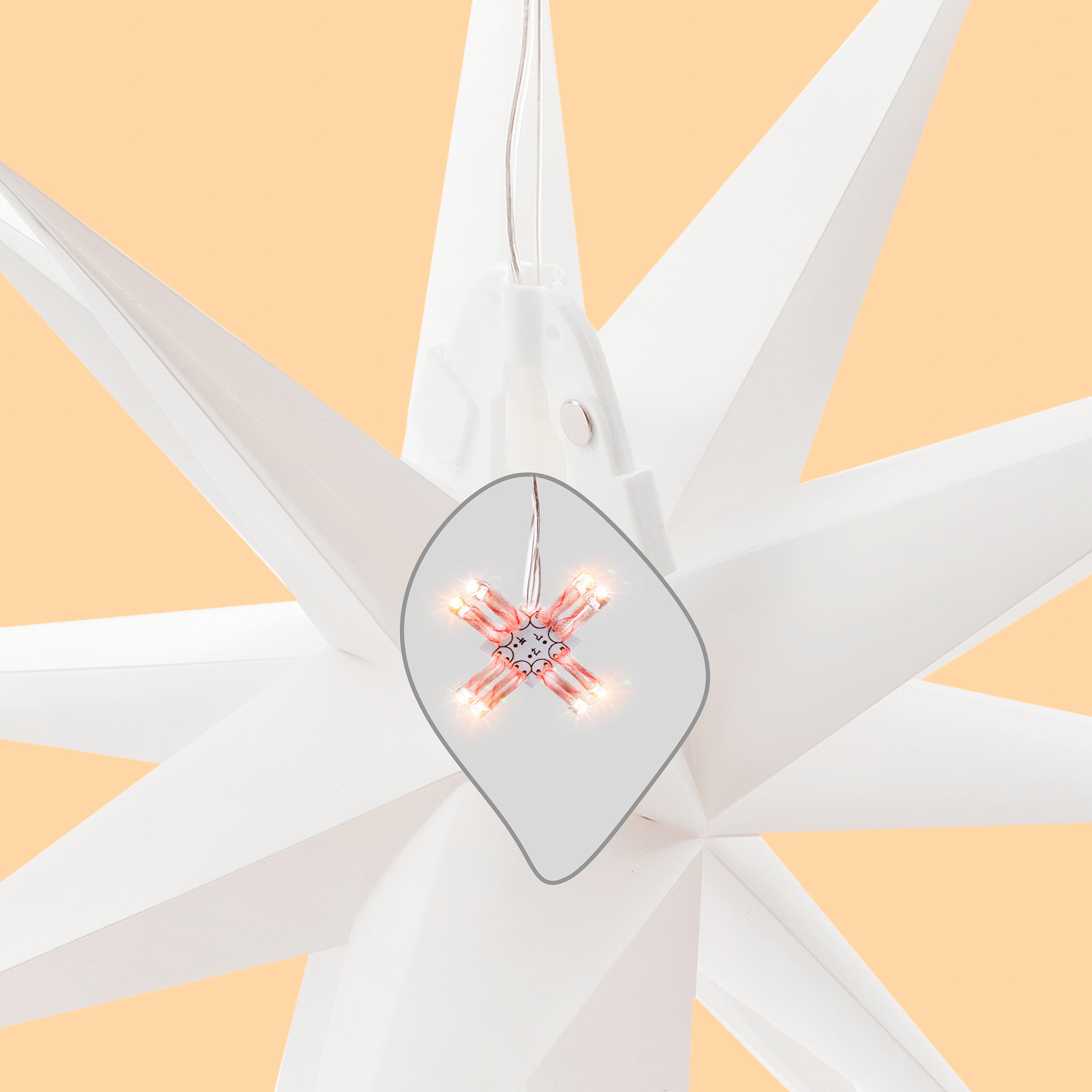 Produkt besteht aus: Leuchtstern aus Kunststoff (weiß, lichtdurchlässig und witterungsbeständig)
