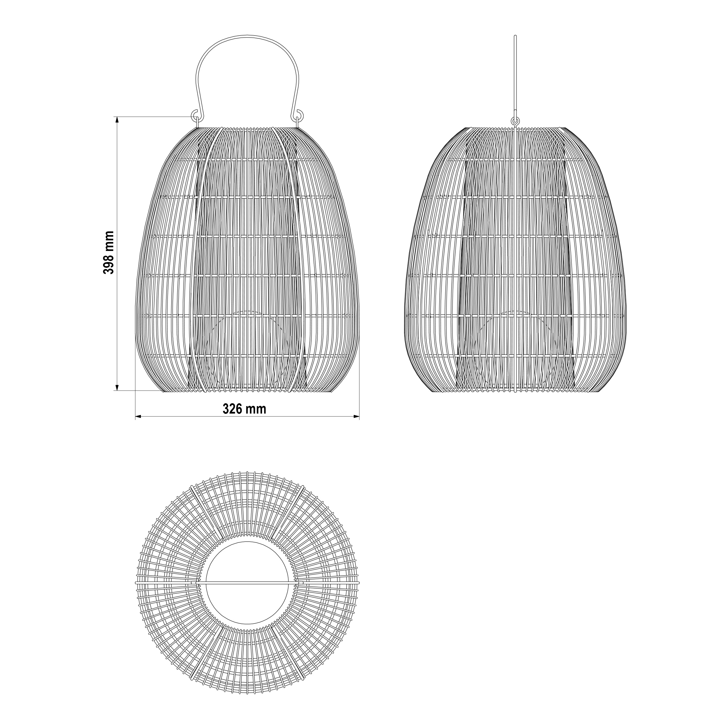 | Produkt besteht aus: | Leuchtengestell aus Metallstäben umwickelt mit Polyrattan (braun) |