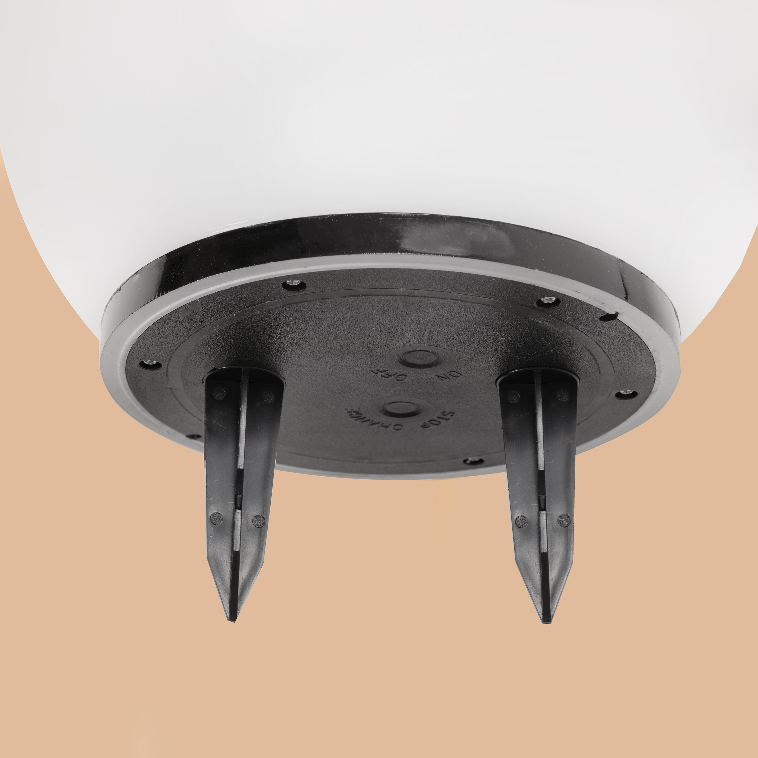 | Leuchtenunterteil und Erdspieß aus schwarzem Kunststoff | |
