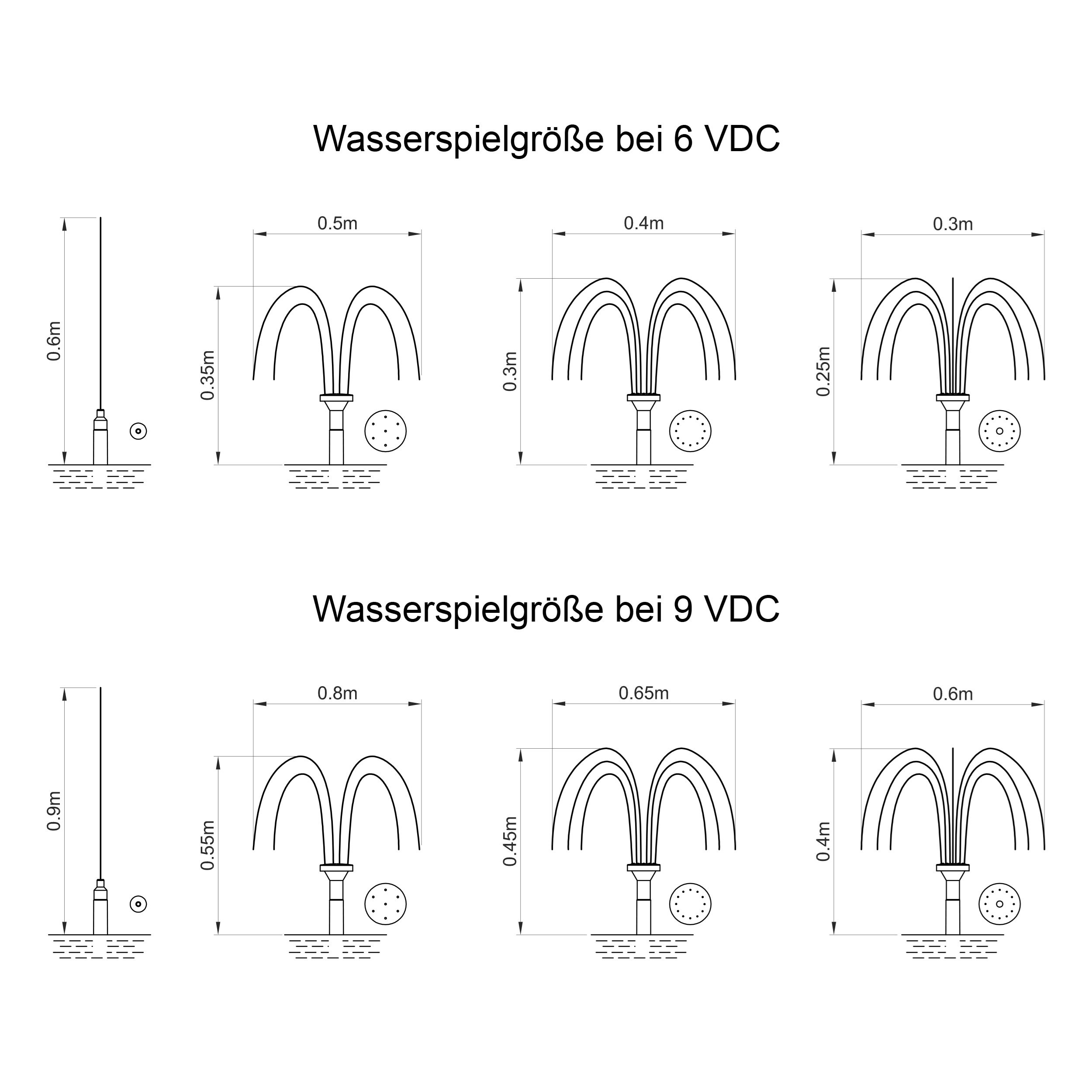| Förderhöhe: | 6V: max. 0,5 m (Kennlinie siehe Bilder) |