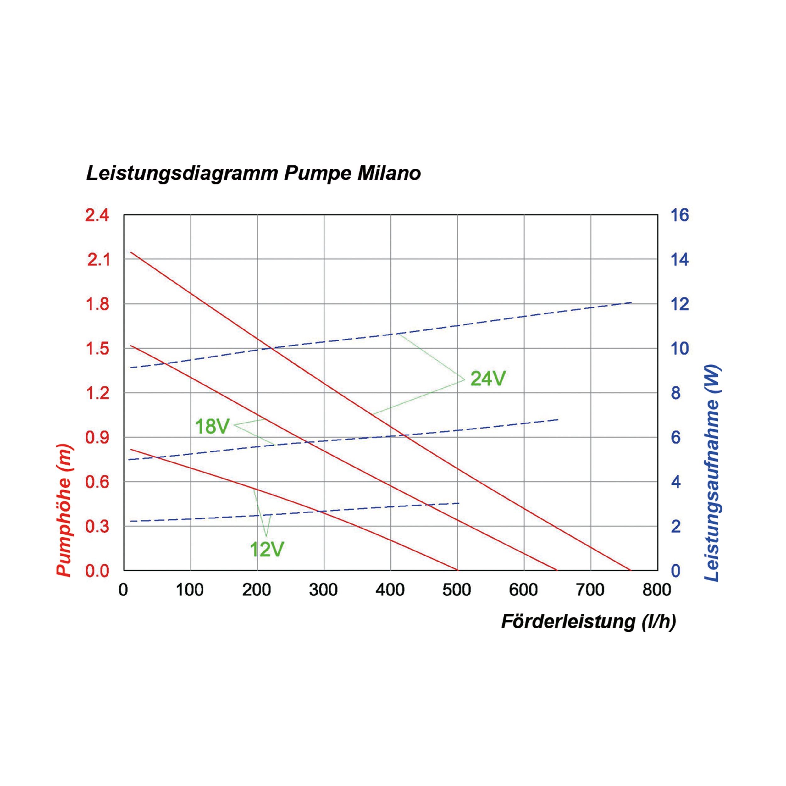 | Förderhöhe: | 12 V: max. 0,8 m (Kennlinie siehe Bilder) |