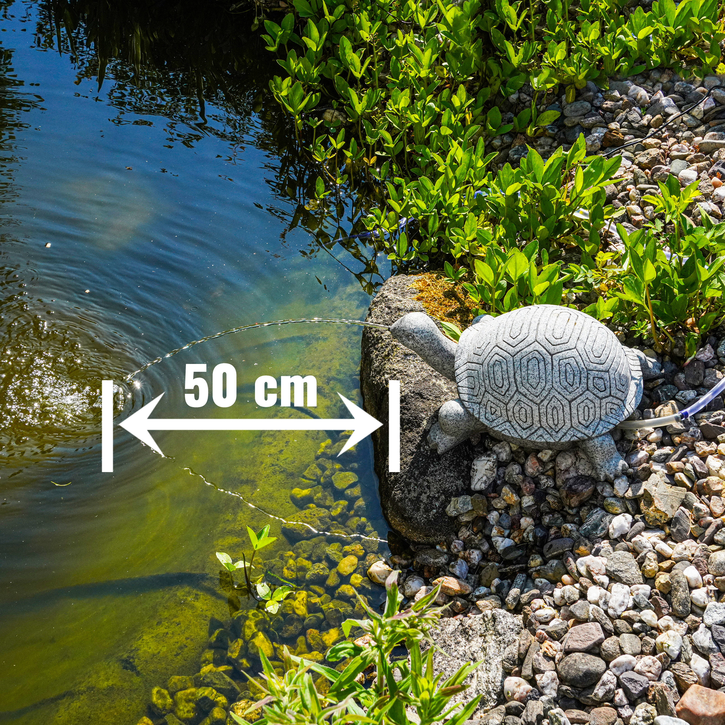 | Wasserstrahllänge: | Max. 50 cm (regulierbar über Leistung der Pumpe) |