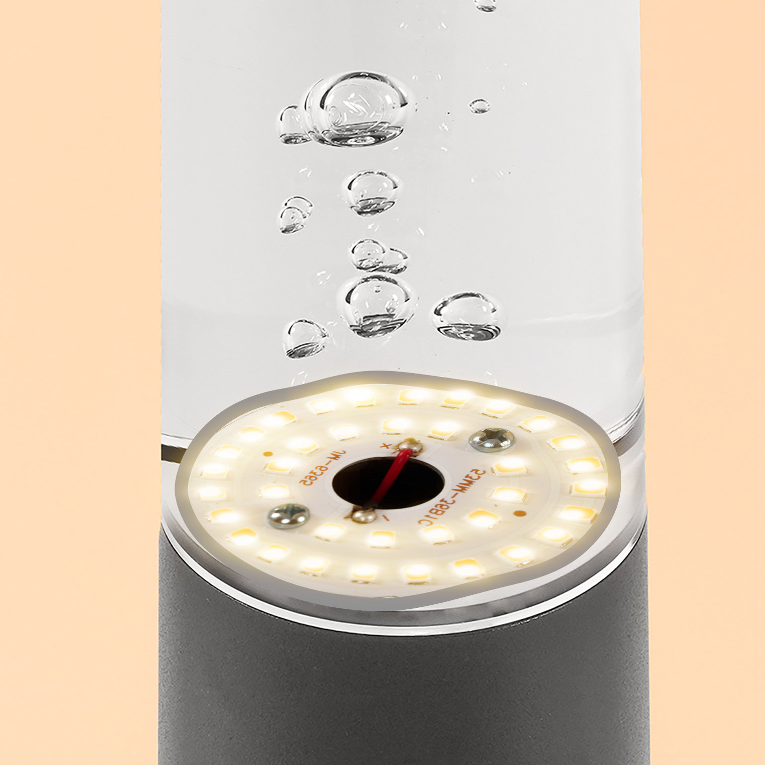 | Leuchtkopf: Massives Acryl mit eingeschlossenen Luftblasen | |
